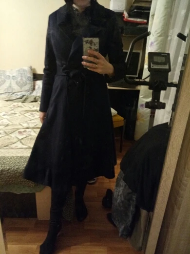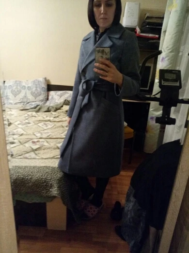 Супер тонкое пальто, складывается в маленькую сумочку (на фото получилась визуально больше). Цвет как на фото продавца, у меня темнее получились фотки. Мои параметры 90/75/96, село норм. В груди внатяг на футболку, но мне под шерстяным пальто носить - показала на фото. И да, очень быстро приехало.