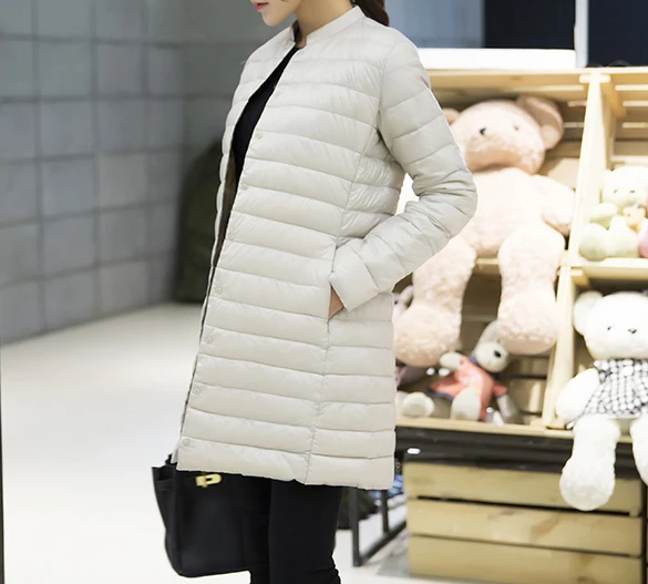 Женская весенняя Стеганое длинная теплая хлопковаяодежда легкийсредний и длинныйпуховик женский тонкий пиджак одноцветноепортативное пальто осеннего и зимнего