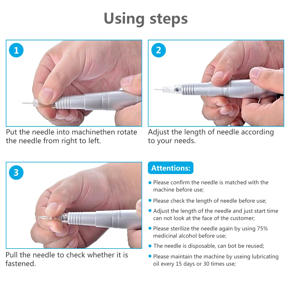 Посылка входит:1 х тату-машинка для бровей1 х адаптер переменного тока1 игла 1RLОсобенности товара:Новый дизайн, простота управления и сотрудничества;Используется с чистой металлической оболочкой, Космический серебряный цвет, никогда не истирается;Высокая скорость, 15000 об/м-300 000 об/м, высокая производительность;Стабильное вращение, меньше вибрации, низкий уровень шума.Подходит для бровей, век и губ, а также для небольшого дизайна татуировки; Можно регулировать длину иглы, вращая серебряное кольцо, длина иглы регулируется от 0 до 2,5 мм;Набор с колпачком для ручки безопасен и удобен;Срок службы в два раза дольше, чем у обычных аппаратов для перманентного макияжа.Внимание:1. Работа на холостом ходу около 10 секунд, чтобы убедиться, что электрическая проводимость хорошая перед использованием.2. Закрутите удерживающий наконечник, и вы увидите игольную трубку.3. Пожалуйста, сделайте иглы немного согнутыми перед тем, как вставить иглу.4. Во избежание перегрева ручки прекратите использование примерно на 10 минут после полного нанесения татуировки бровей.