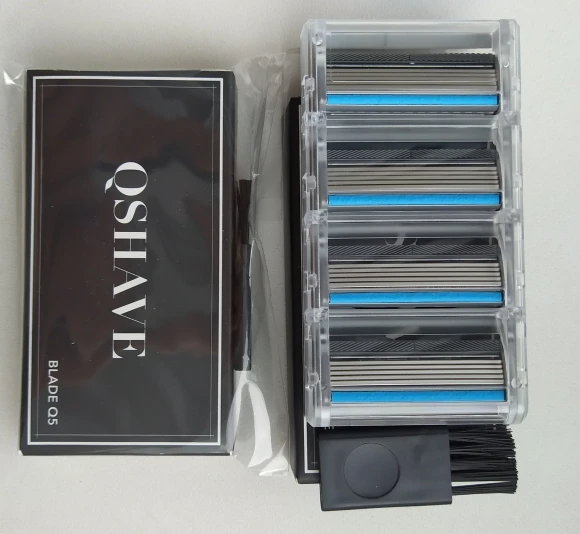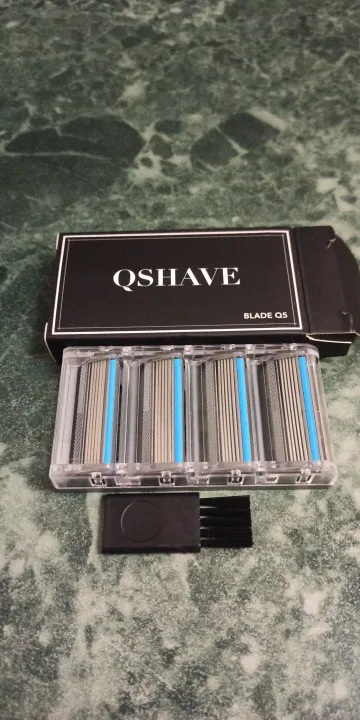 Приличные лезвия для рукоятки Qshave. Предпочтите их по сравнению с 6 пятнистыми, так как между лезвиями больше места для волос. Качество, сравнимое с Gillette, хорошо бриться и сохранить остроту довольно долго. Может быть немного дешевле во время некоторых продаж на AliExpress (6,88 евро за 4 упаковки).