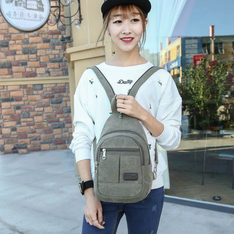 Рюкзак Холщовый в Корейском стиле для мужчин и женщин, маленькая Двусторонняя нагрудная сумка, модный дорожный ранец PT1135