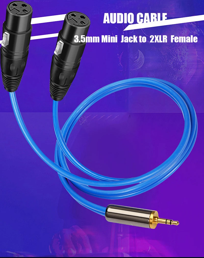 Аудиокабель Hi-Fi с разъемом 18 дюйма, мини-джек 3,5 мм на двойной XLR с 3-контактным разъемом мама для ПК, наушников, кабель с двумя штекерами 3,5 дюйма на