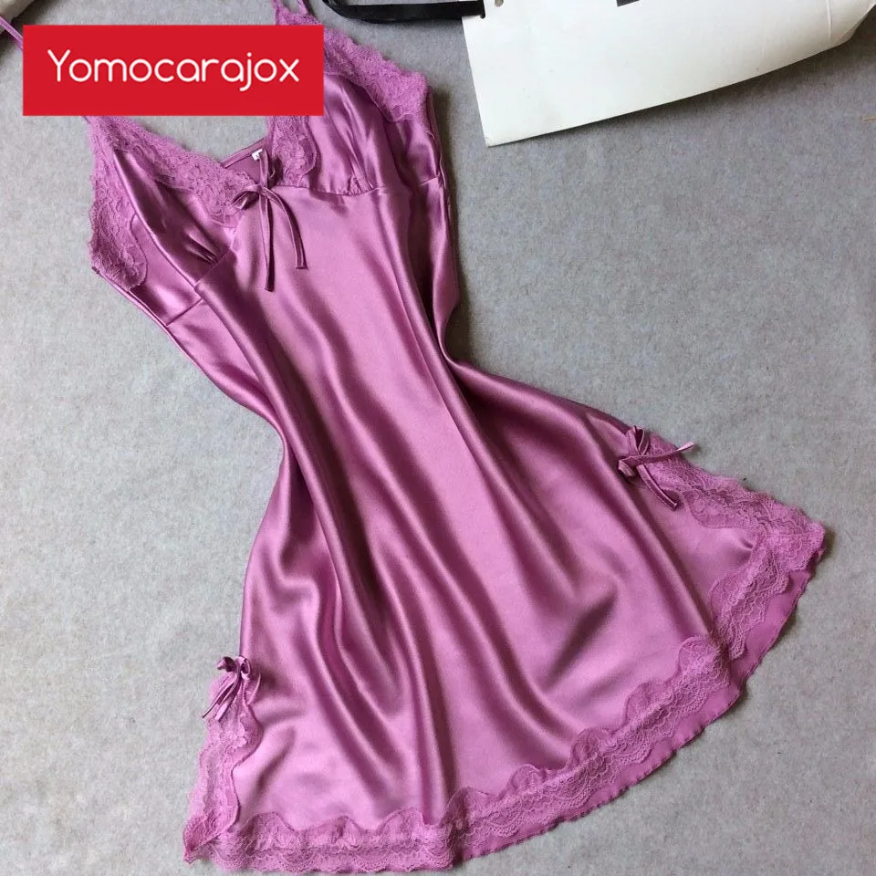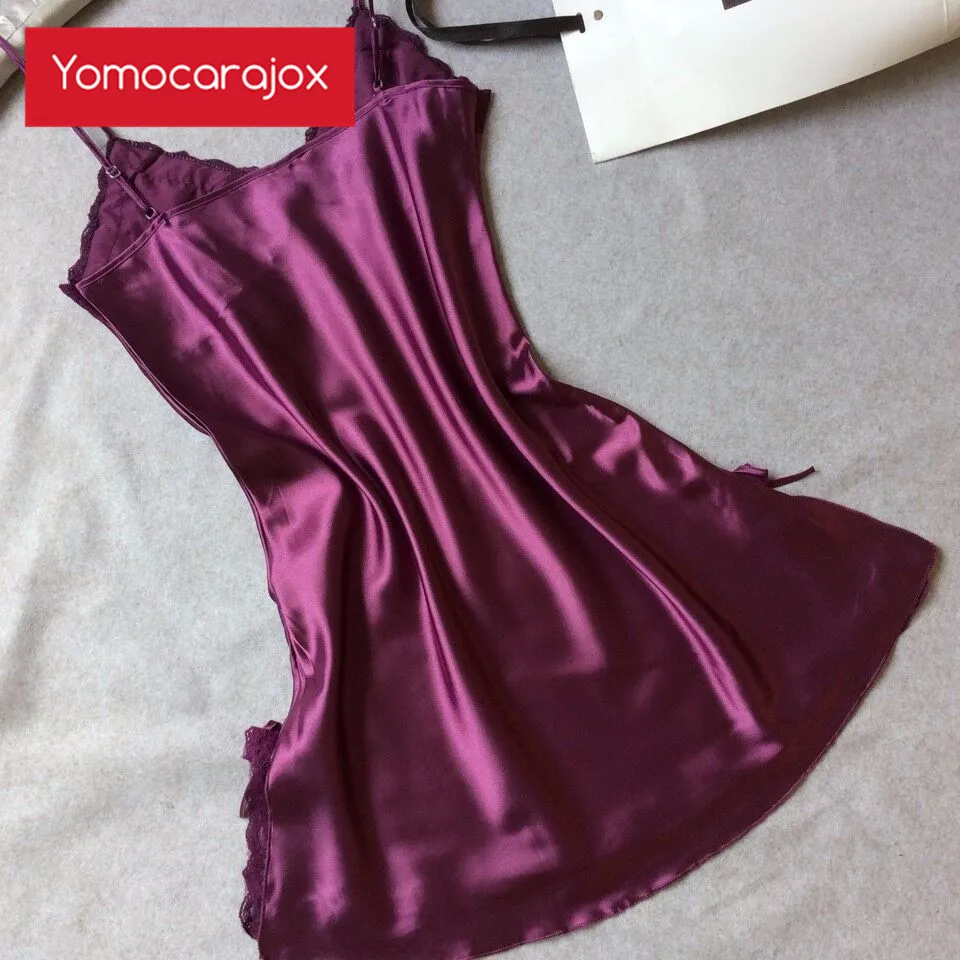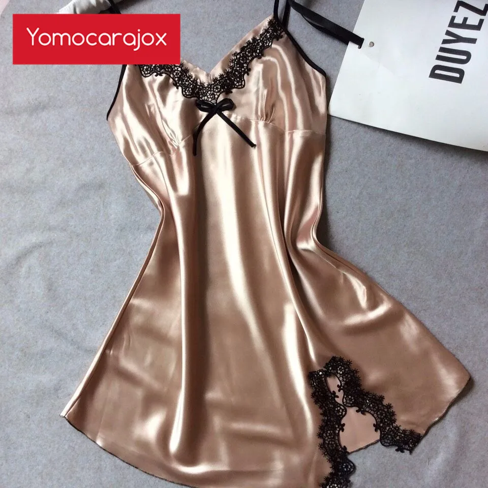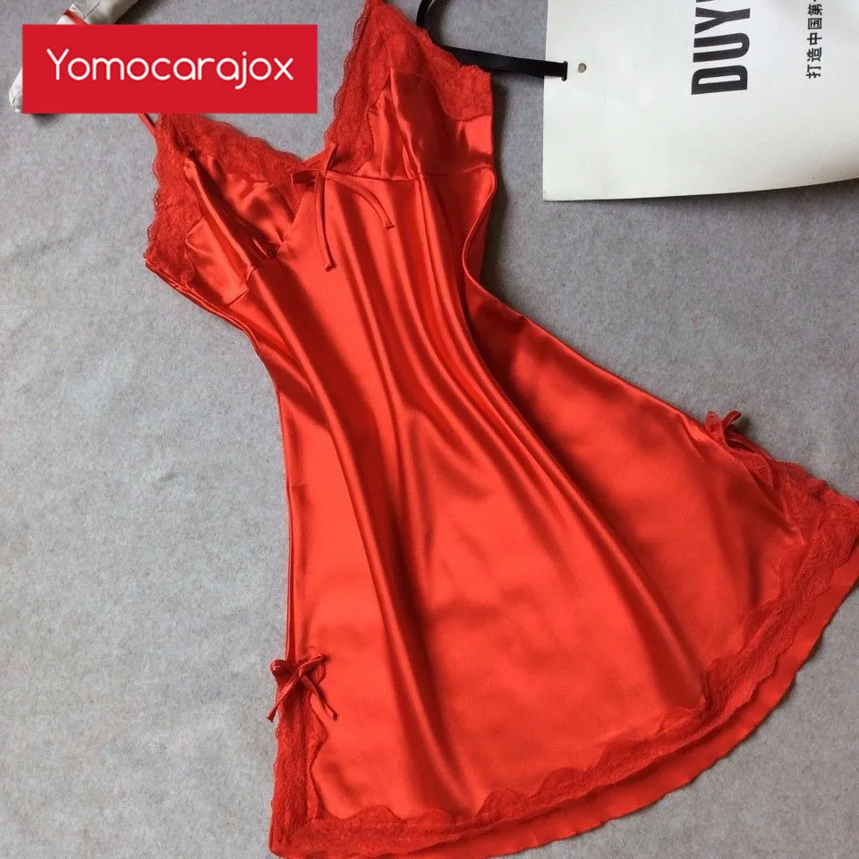 Женская сексуальная шелковая атласная ночная рубашка без рукавов с V-образным вырезом