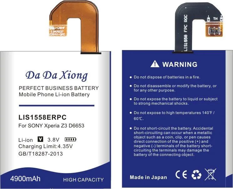 Литий-ионный аккумулятор DaDaXiong 4900 мАч LIS1558ERPC для телефона Sony Xperia Z3 L55T L55U D6653 D6603 D6633 D5803 D5833 D6616 D6708