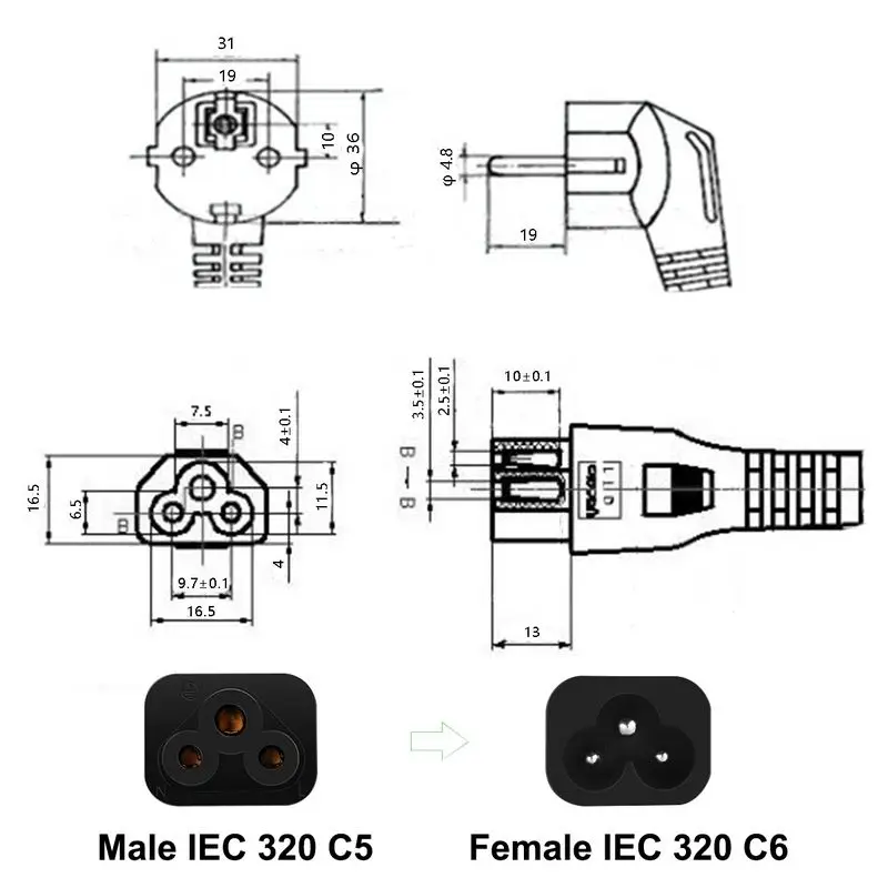 Кабель питания для ноутбука, 0,5 м, 6 футов, 2 м, 3 м, штепсельная вилка европейского стандарта, IEC C5, кабель адаптера питания для Dell, HP, ПК, компьютера, монитора, принтера, LG, телевизора