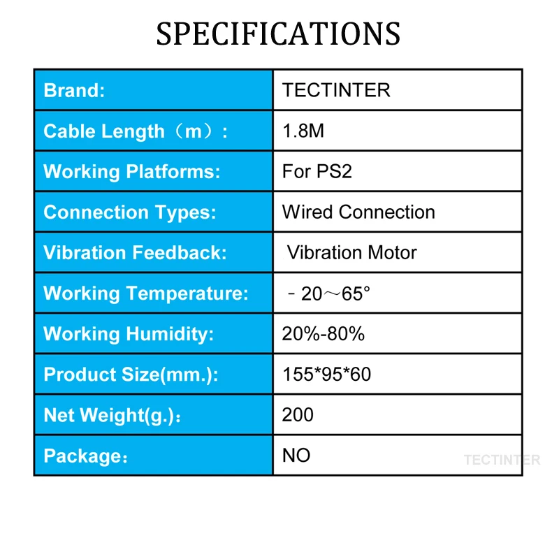Этот элемент является проводным контроллером для Sony PlayStation 2, превосходное автоматическое подключение. Использование высокопроизводительных чипов, геймпад в игре имеет лучшую стабильность, высокоточные рокеры 360 °, задержка почти равна нулю. С дизайном кривой человеческого тела, вы не будете чувствовать усталость, даже если вы зависимы от игры в течение длительного времени! Он также поддерживает PS3/PC win7/8/10, но вам нужен адаптер PS2, ссылка на покупку: https://www.aliexpress.com/item/32779489386.html