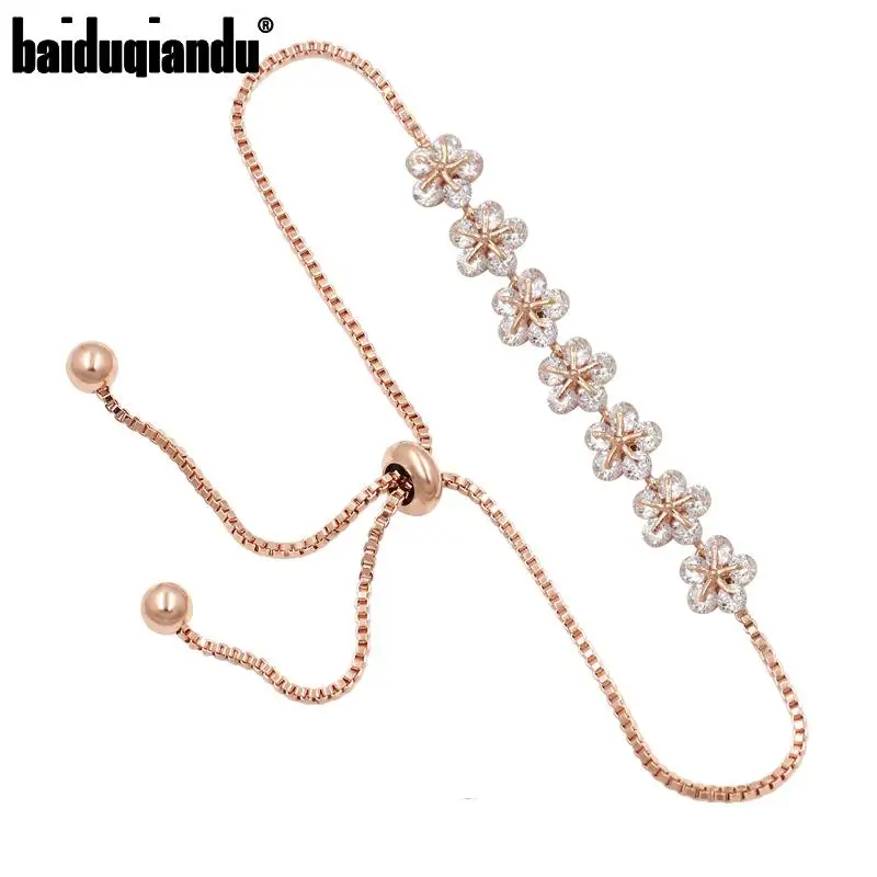 Женский браслет со сверкающими фианитами, регулируемый браслет с цветочным узором из циркона