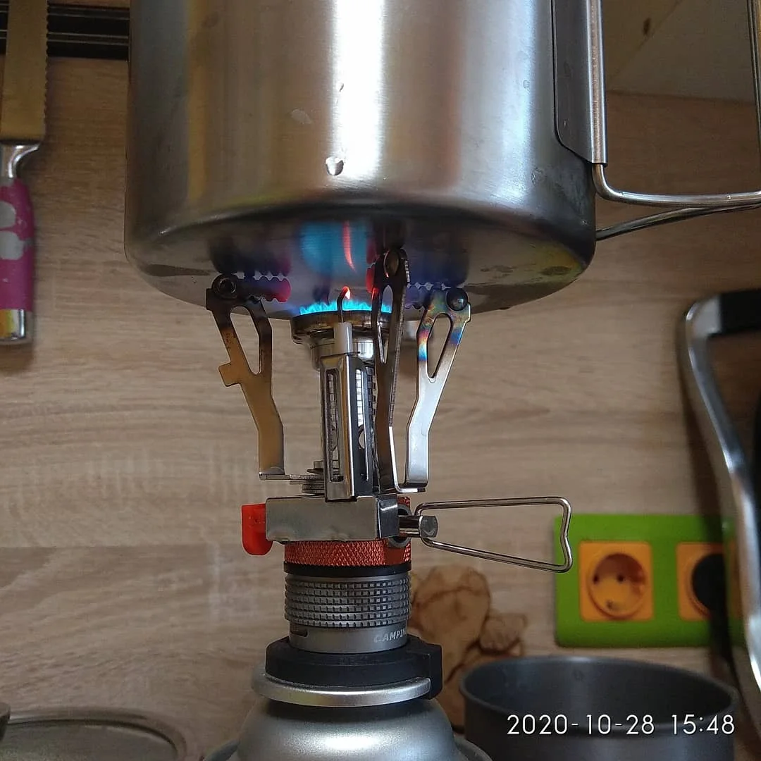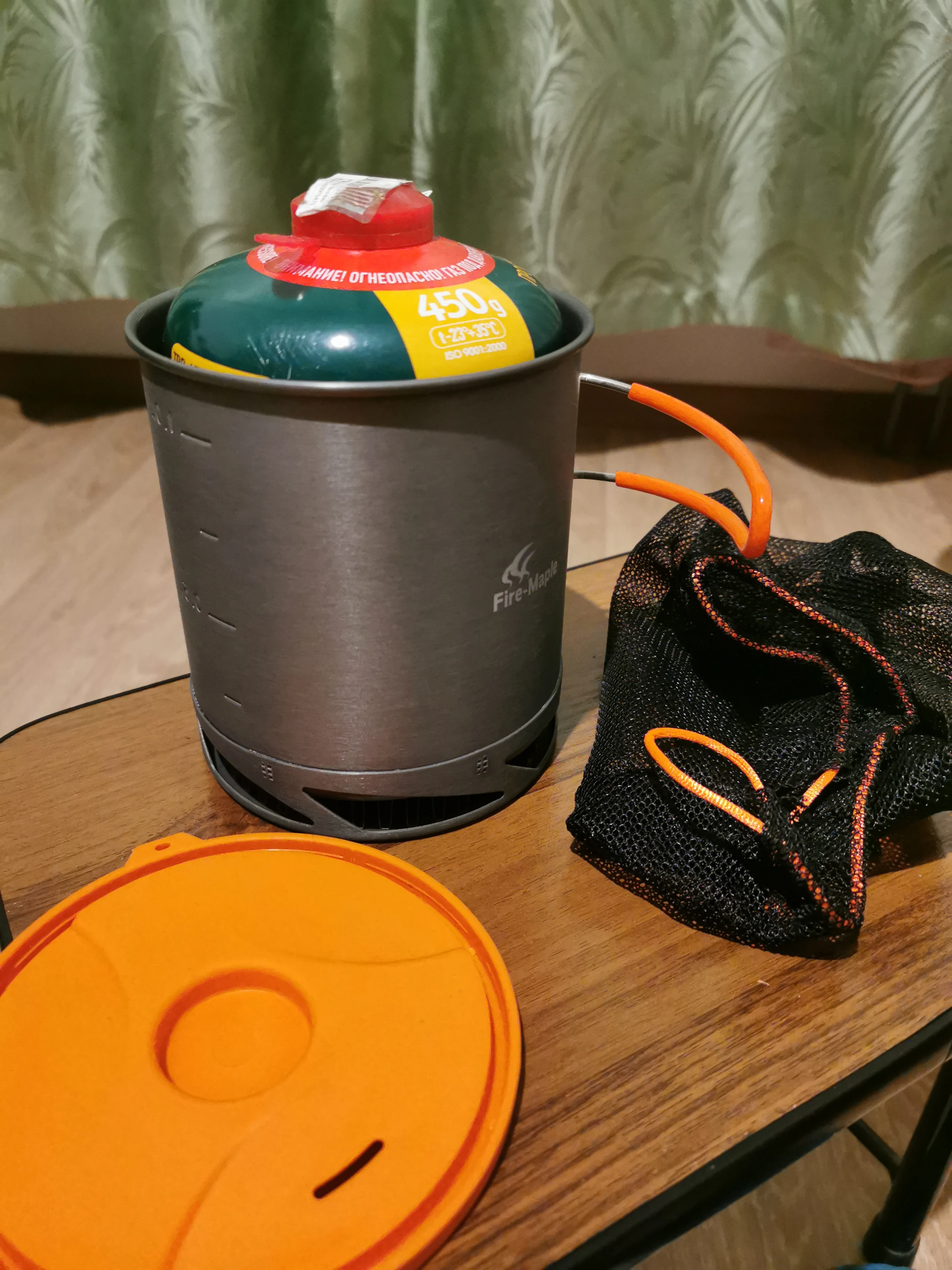 Наверное лучший котелок для одного - двух человек. Вода закипает быстро, крышка с горячего котелка снимается без проблем. Входит 230 г. газовый баллон. В комплекте сетка для хранения.