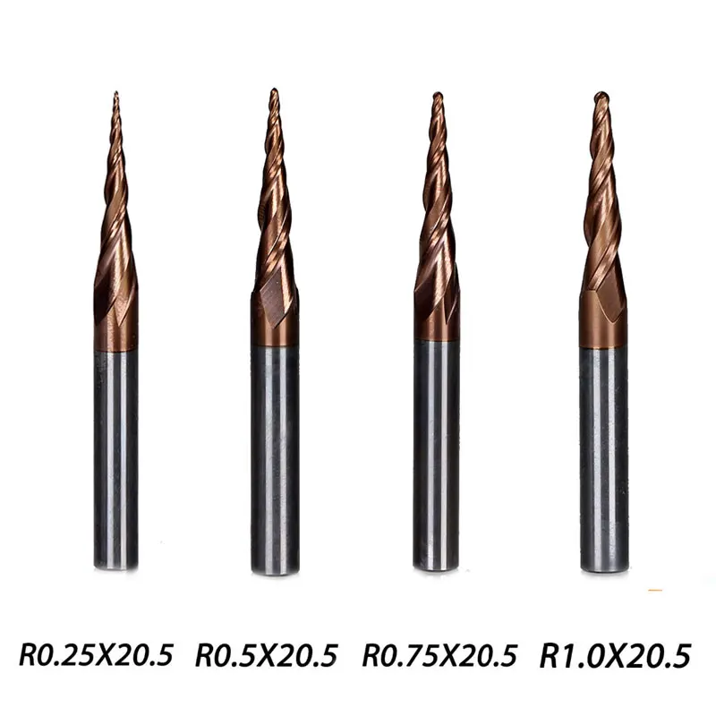 4 шт.лот 4 модели карбидная коническая Концевая фреза шаровая флейта длина 20,5 мм диаметр 4 мм серия HRC55