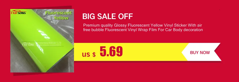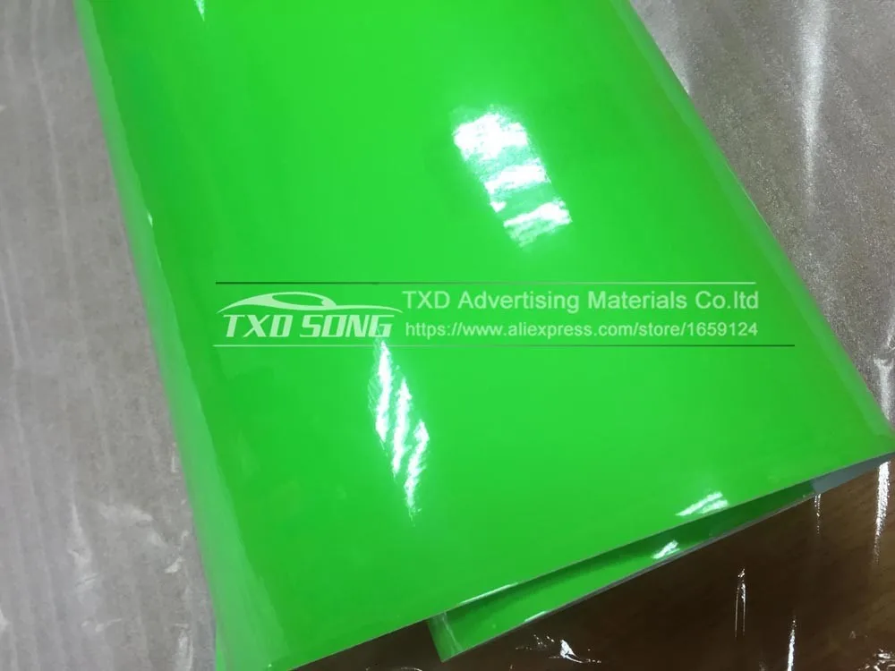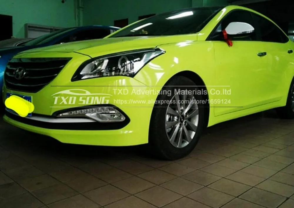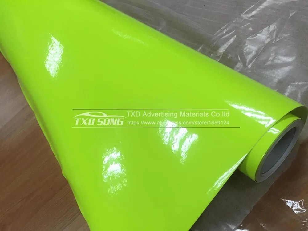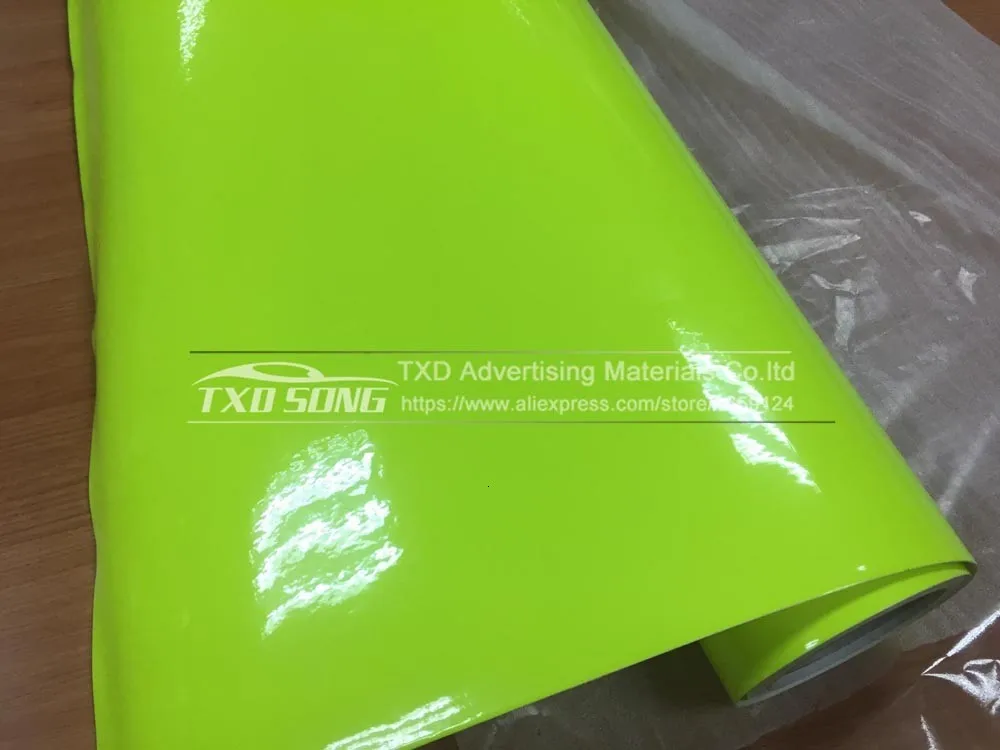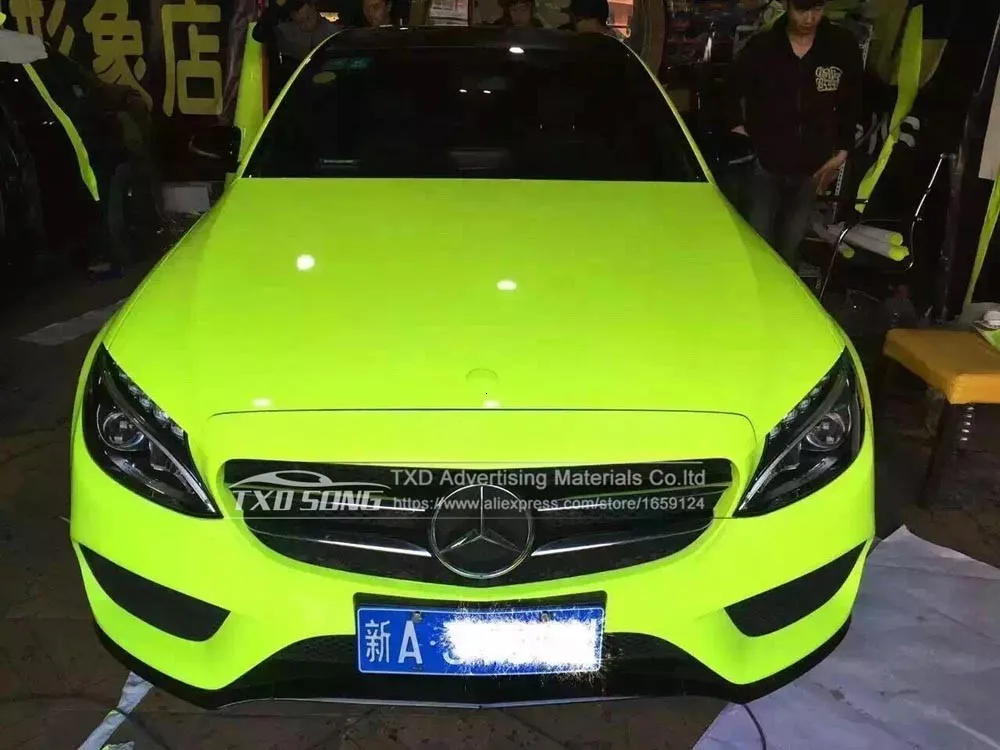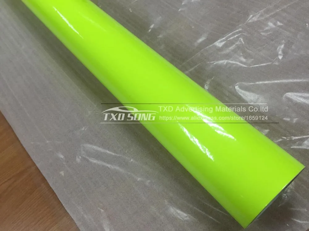 Высококачественная Глянцевая флуоресцентная желтая виниловая наклейка без воздушных пузырей флуоресцентная виниловая пленка для украшения кузова автомобиля