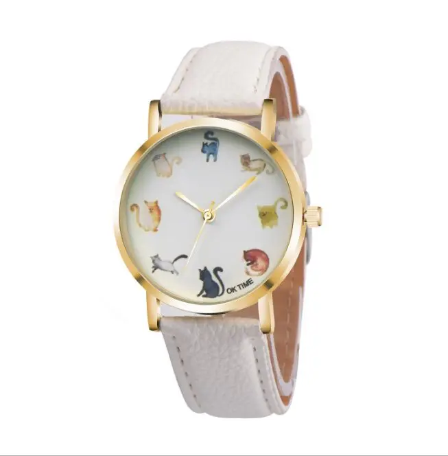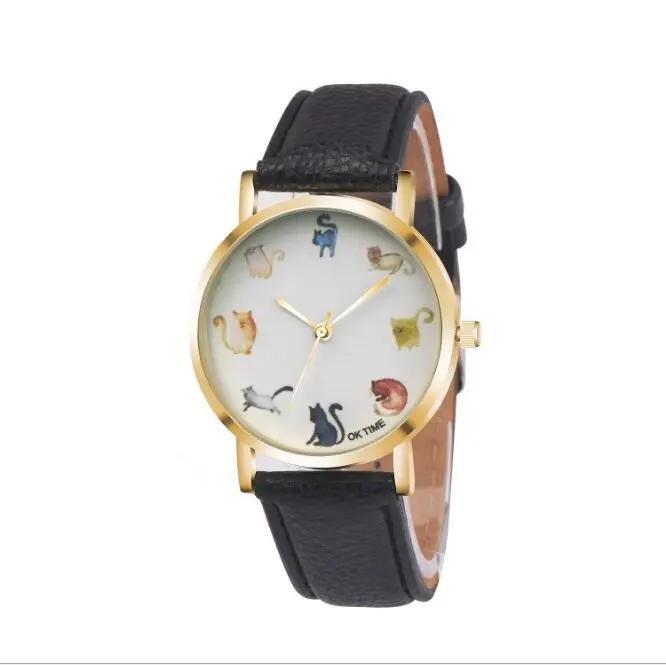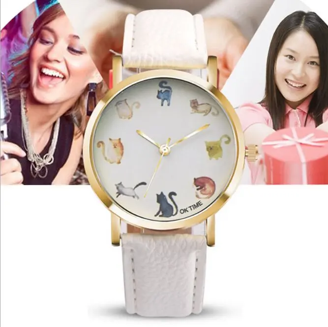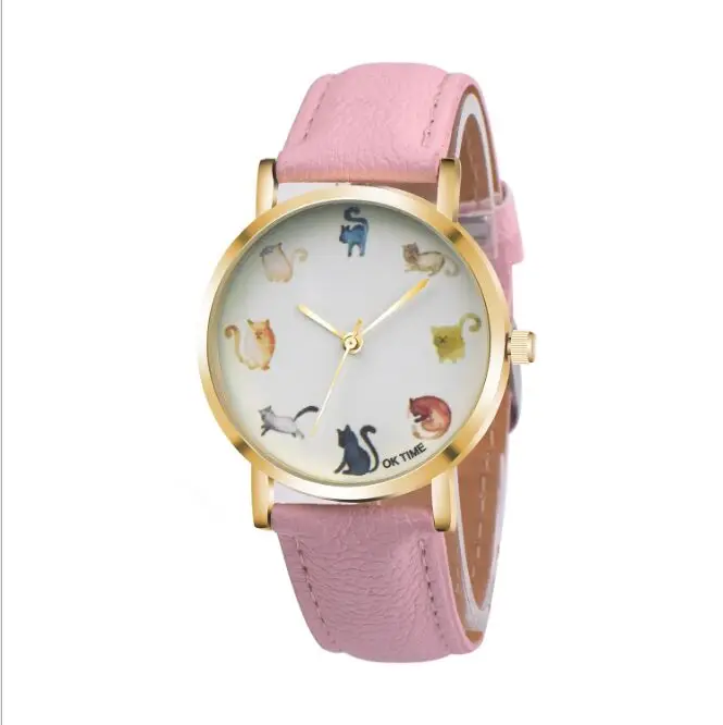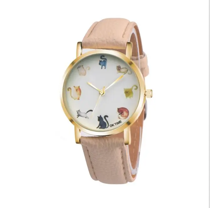 1 шт., часы с милыми кошками, оранжевые очки, кожаные часы для женщин, повседневные кварцевые часы с кошкой, милые наручные часы OKTIME icon star icon star icon star icon star icon star