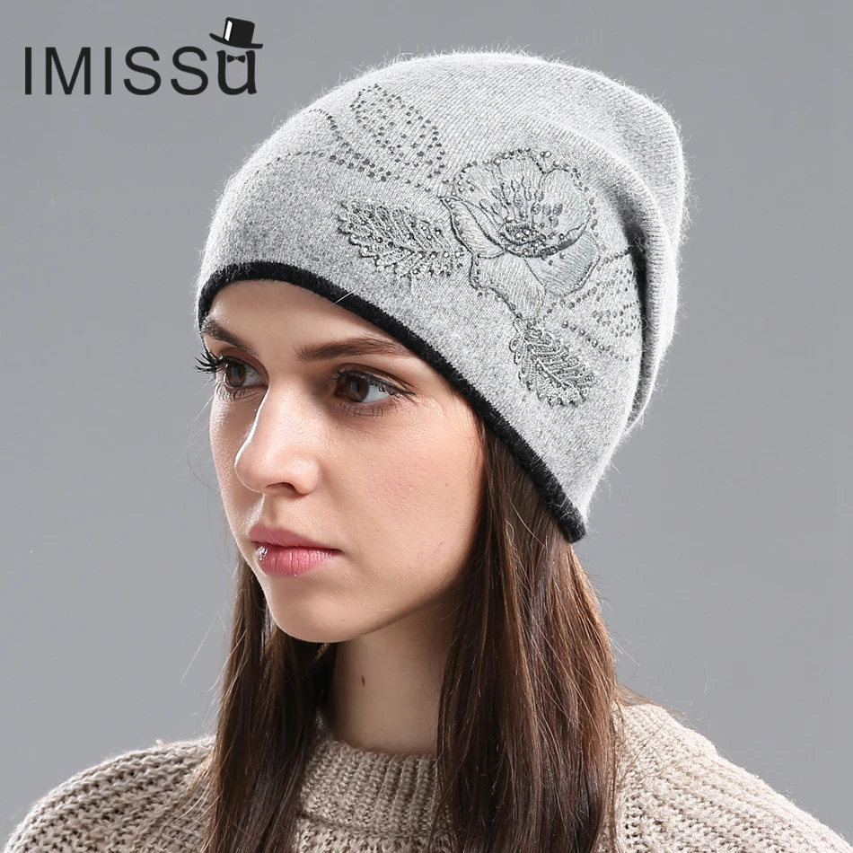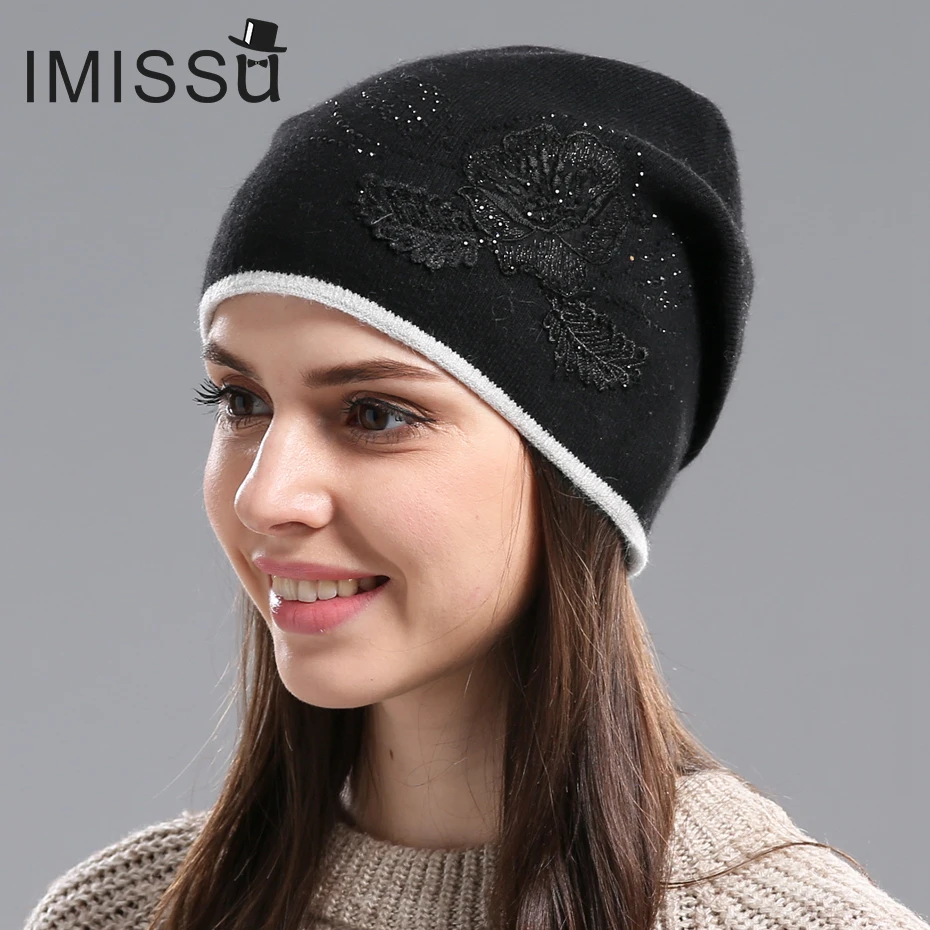 IMISSU женские Зимние Шапки Вязаные Шерстяные Skullies Повседневная Cap с Цветочным Узором Gorros Толстый Теплый Капот Шапочка Hat для женщины