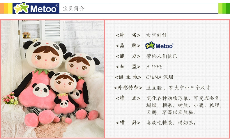 Кукла Metoo плюшевая для девочек, 45 см, милая панда, мягкая мультя...