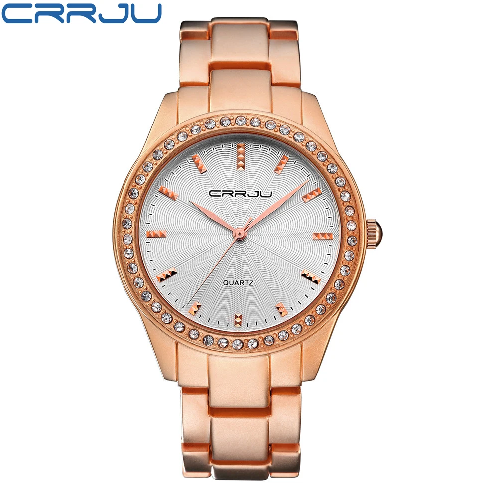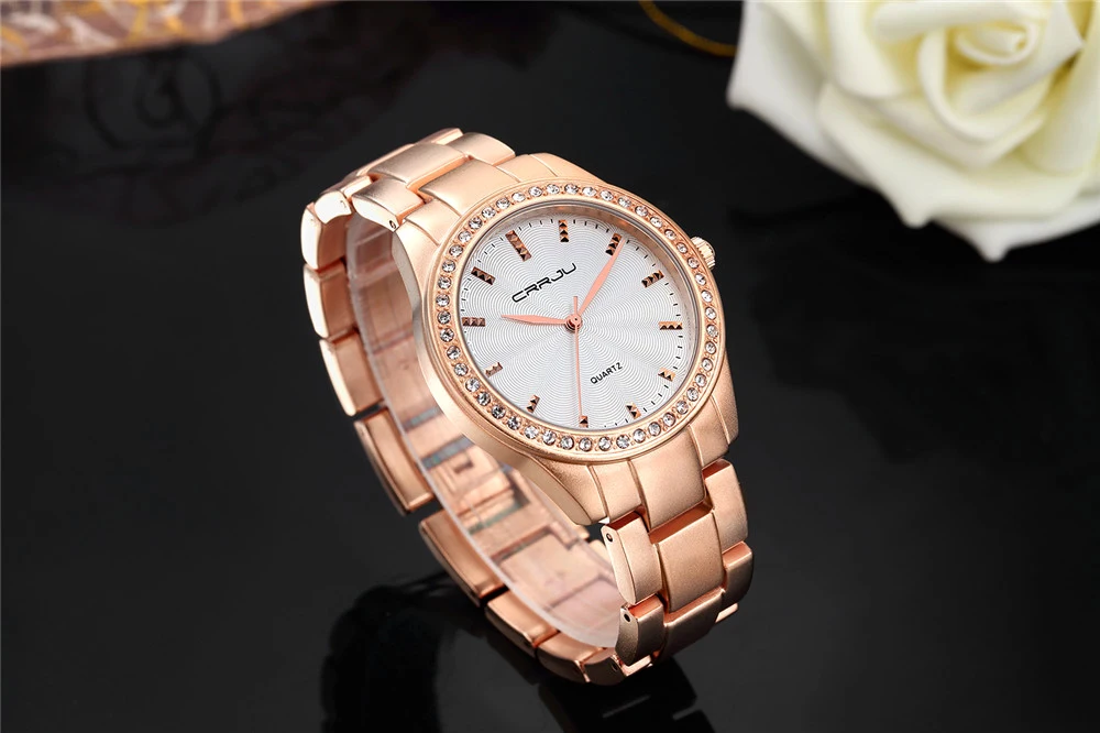 Часы женские кварцевые со стразами, люксовые наручные, с браслетом из розового золота