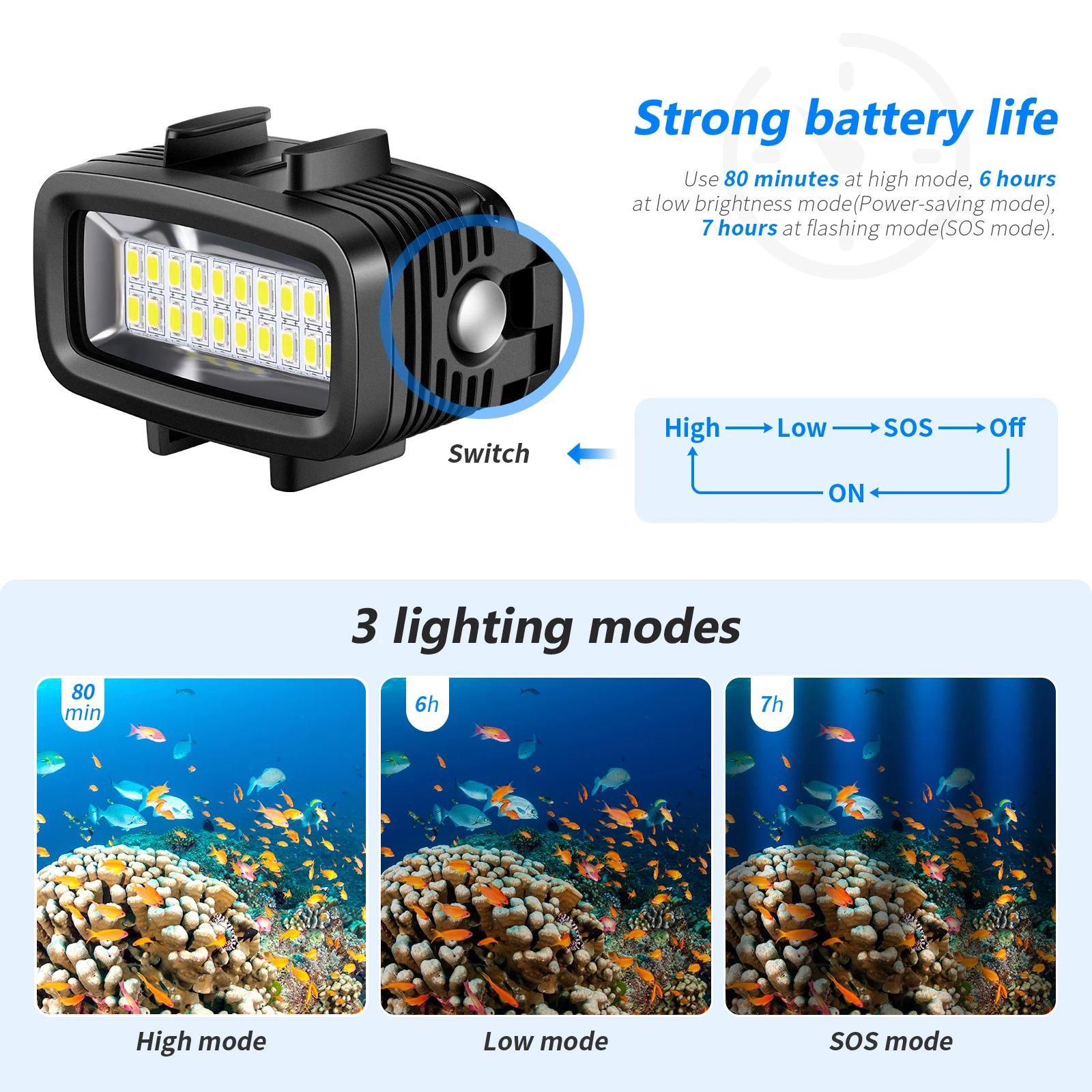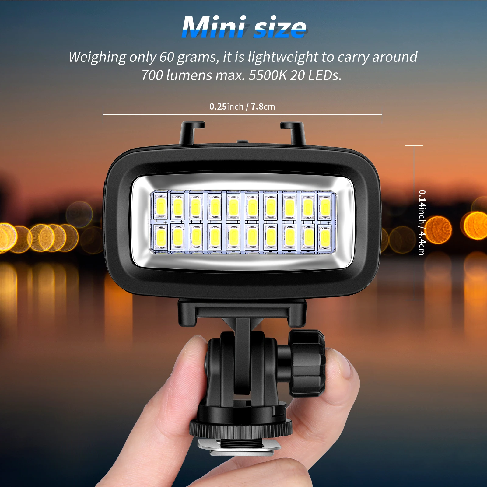Neewer подводный 20 LED 700LM вспышка с регулируемой яркостью заполняющий Ночной светильник с цветным фильтром для GoPro Hero 10 9 8 7 6 5 4 3 + Экшн-камера