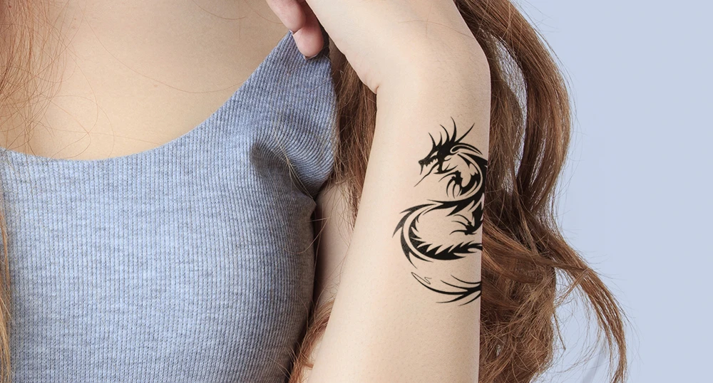 Перенос воды поддельные татуировки одноразовые водостойкие временные черный дракон тотем бабочка наклейки для женщин мужчин сексуальный боди-арт