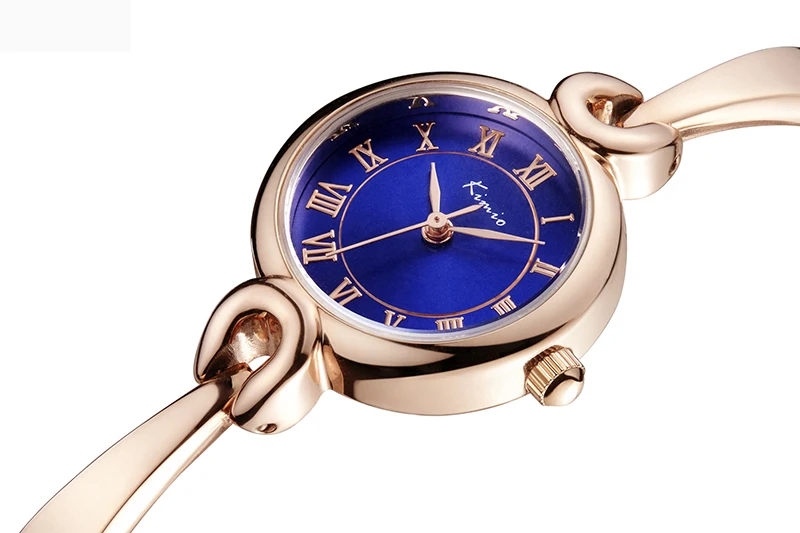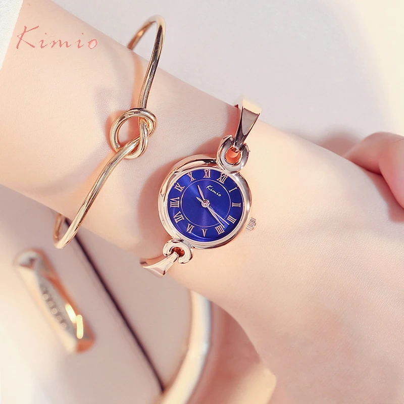 Женские часы-браслет KIMIO, простые синие наручные часы с покрытием из розового золота 2017 пробы, полоска из нержавеющей стали, кварцевые наручные часы