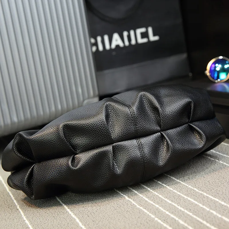 Женская сумка LYKANEFU, черная сумка из искусственной кожи с зажимом, Высококачественная сумка-торба