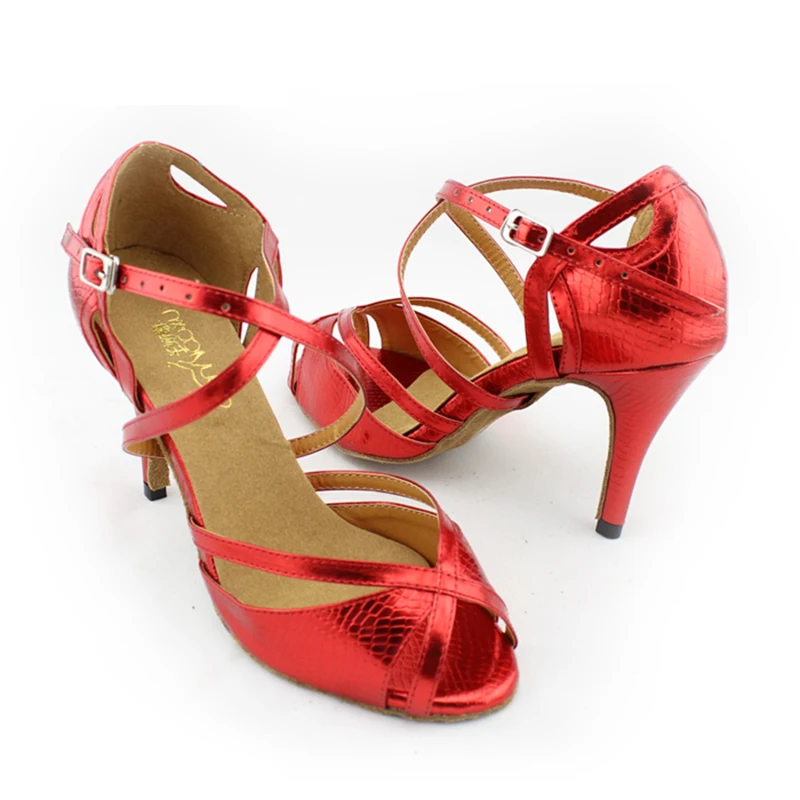 Танцевальная обувь для бальных танцев, танцевальная обувь из Искусственной Змеиной кожи с мягкой подошвой, спортивная женская обувь на каблуке 8 см для сальсы