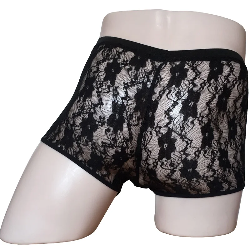 Трусы-боксеры мужские, сексуальные, плотно прилегающие, с открытой промежностью, с цветочным кружевом, эротический фетиш, стринги для танцев на Пилоне, нижнее белье