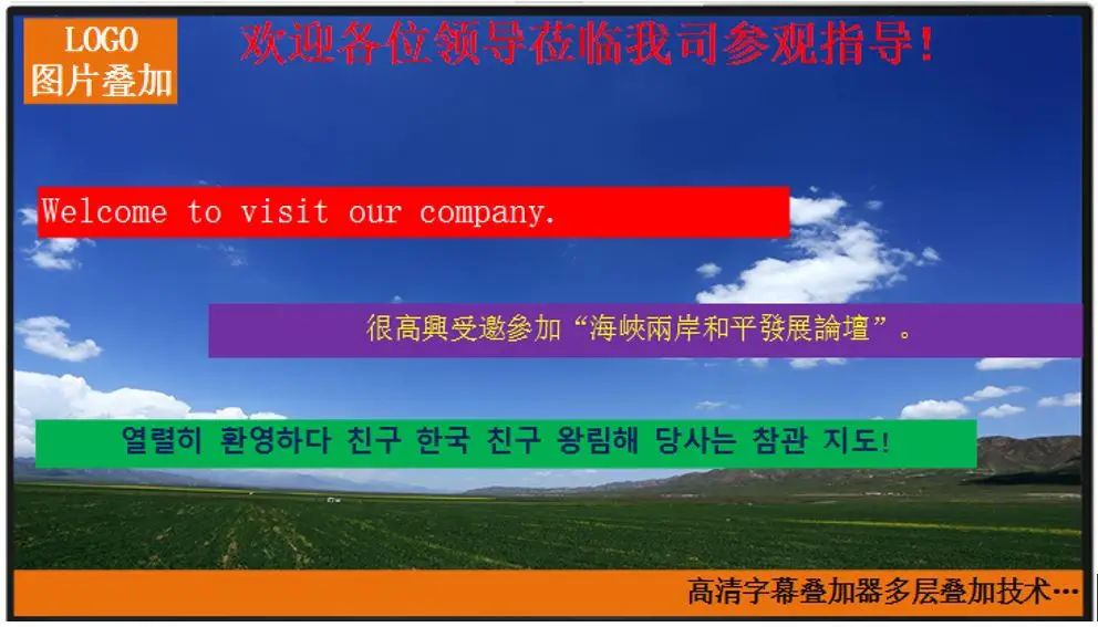 TK-AD01 HD субтитры наложены с его уникальной технологией обработки изображений сигнала, дисплей без каких-либо ограничений на типы языка. Текст на всех языках мира, если пользователь может редактировать текст, продукт может быть идеальным на экране, показанном выше.