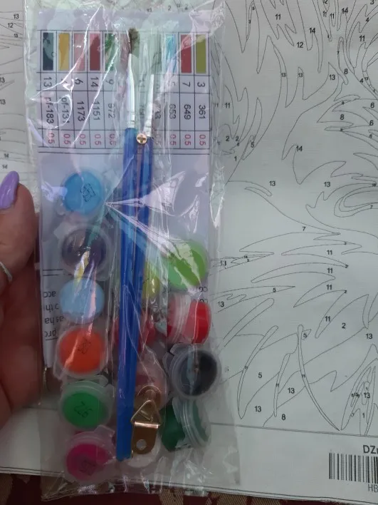 • Комплектация: 3 нейлоновые щетки; 1 набор акриловых красок; 1 холст