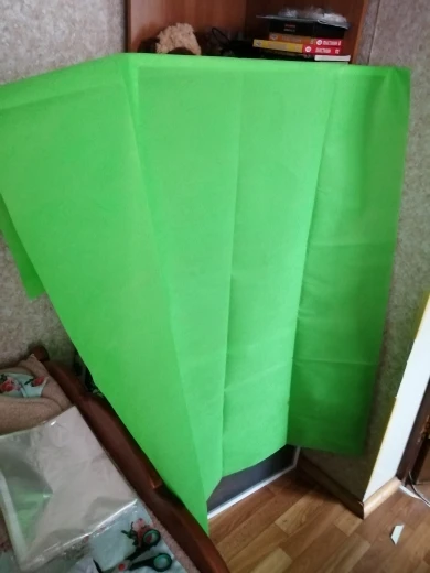 Описание является совершенно точным (точно 1,6x2 м). Быстрая доставка (10 дней от Китая до Киева). Цвет идеально подходит для фильтров chromakey в OBS (протестирован, независимо от пульсации упаковки), хотя вы можете найти это немного отличается от изображений в описании. Большое спасибо продавцу.