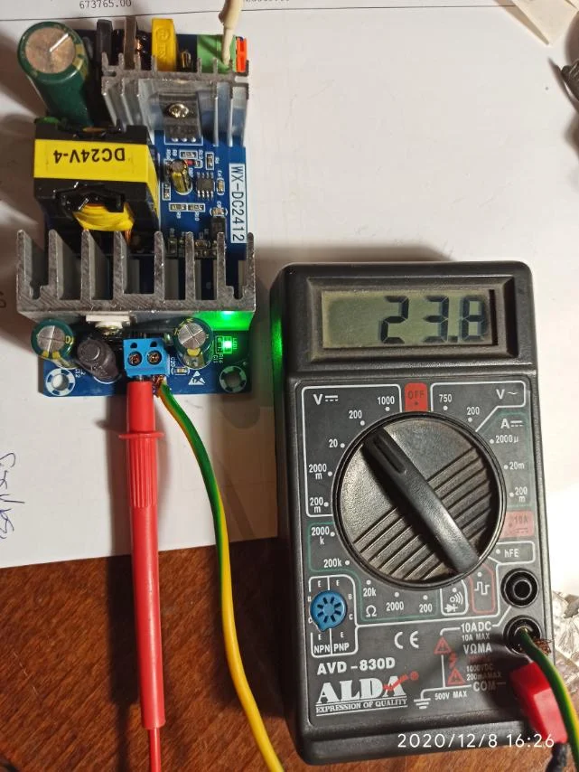 Выдает без нагрузки четко 24.00 вольта. Под нагрузкой просаживаеться до 23.95. Качество пайки на 3.5. Продавец отправил на следующий день заказ и пришёл заказ в Украину, Кременчуг менее чем за 3 недели. Упаковано в антистатический пакет и пару раз обернуто чем то на подобие тонкого паралона. Флюс смыт плохо, а БП воняет невыносимо с пакета чем-то похожим на керасин и с едкими химимическими запахами. За 3 дня не вывонялся полностью, но уже хоть вся квартира им не воняет, а только если с близка нюхать. .... В общем нормальный БП, но с оговорками.