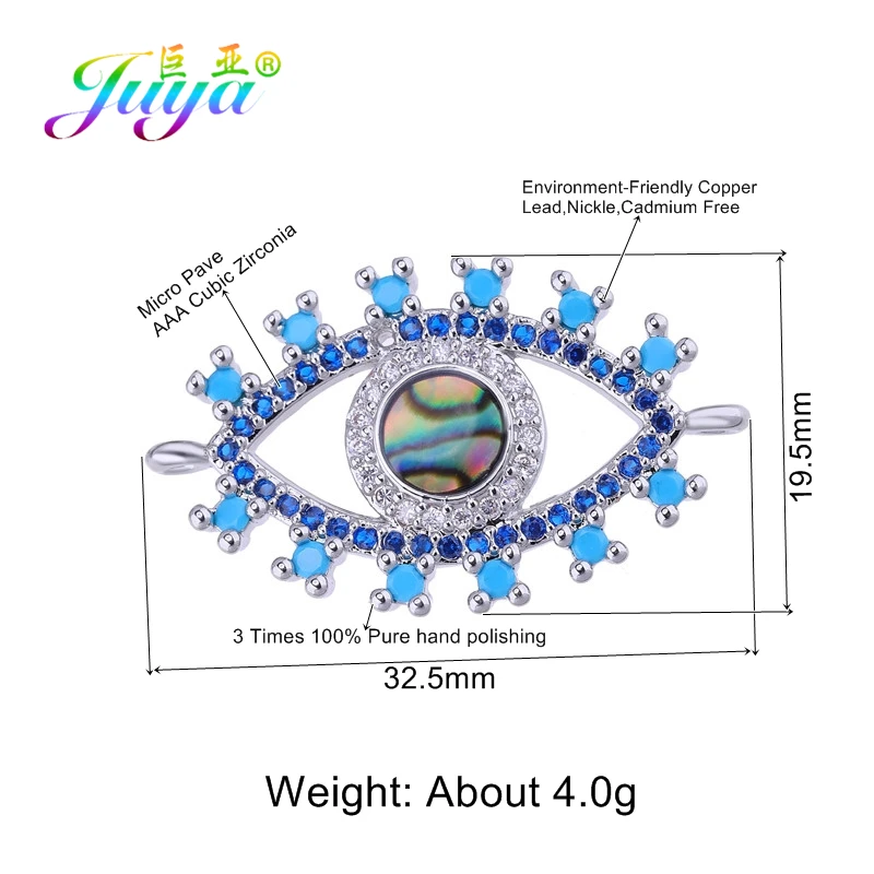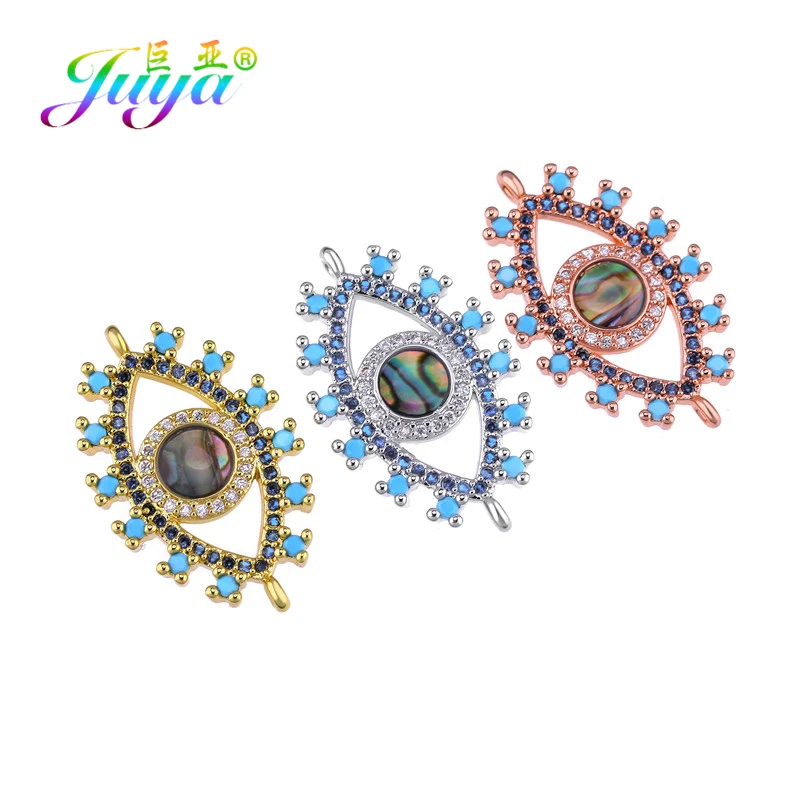 Juya DIY микро проложить синие кристаллы эмаль Греческий Турецкий сглаза Шарм Разъем аксессуары для женщин Браслеты Серьги изготовление
