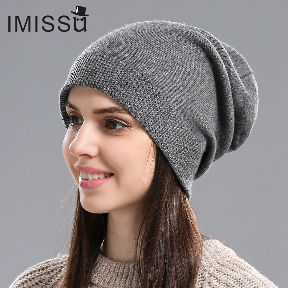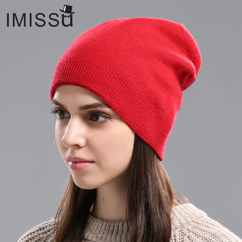 IMISSU Осень Зимние Шапки Мужская Трикотажные Настоящее Шерсть Skullies Повседневная Beanie Сплошных Цветов Лыжные Gorros Крышка Способа Теплый Muts Hat