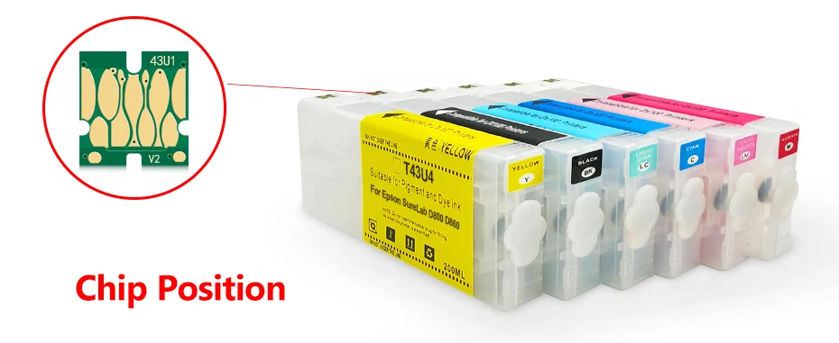 Название продукта: картридж, одноразовая микросхемаНомер картриджа: T43U1 T43U2 T43U3 T43U4 T43U5 T43U6Номер детали OEM:C13T43U140 - T43U1 черныйC13T43U240 - T43U2 CyanC13T43U340 - T43U3 пурпурныйC13T43U440 - T43U4 желтыйC13T43U540 - T43U5 светильник CyanC13T43U640 - T43U6 светильник пурпурныйЦвет картриджа: BK / C / M / Y / LC / LMЕмкость чипа: 200 млТип чипа: один раз используйте чипы, подключи и работайГарантия: в случае обнаружения дефекта замена 1:1