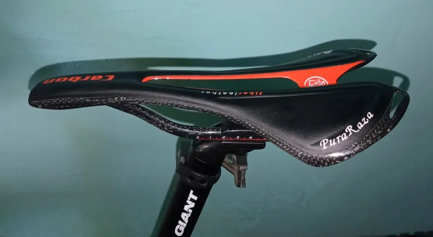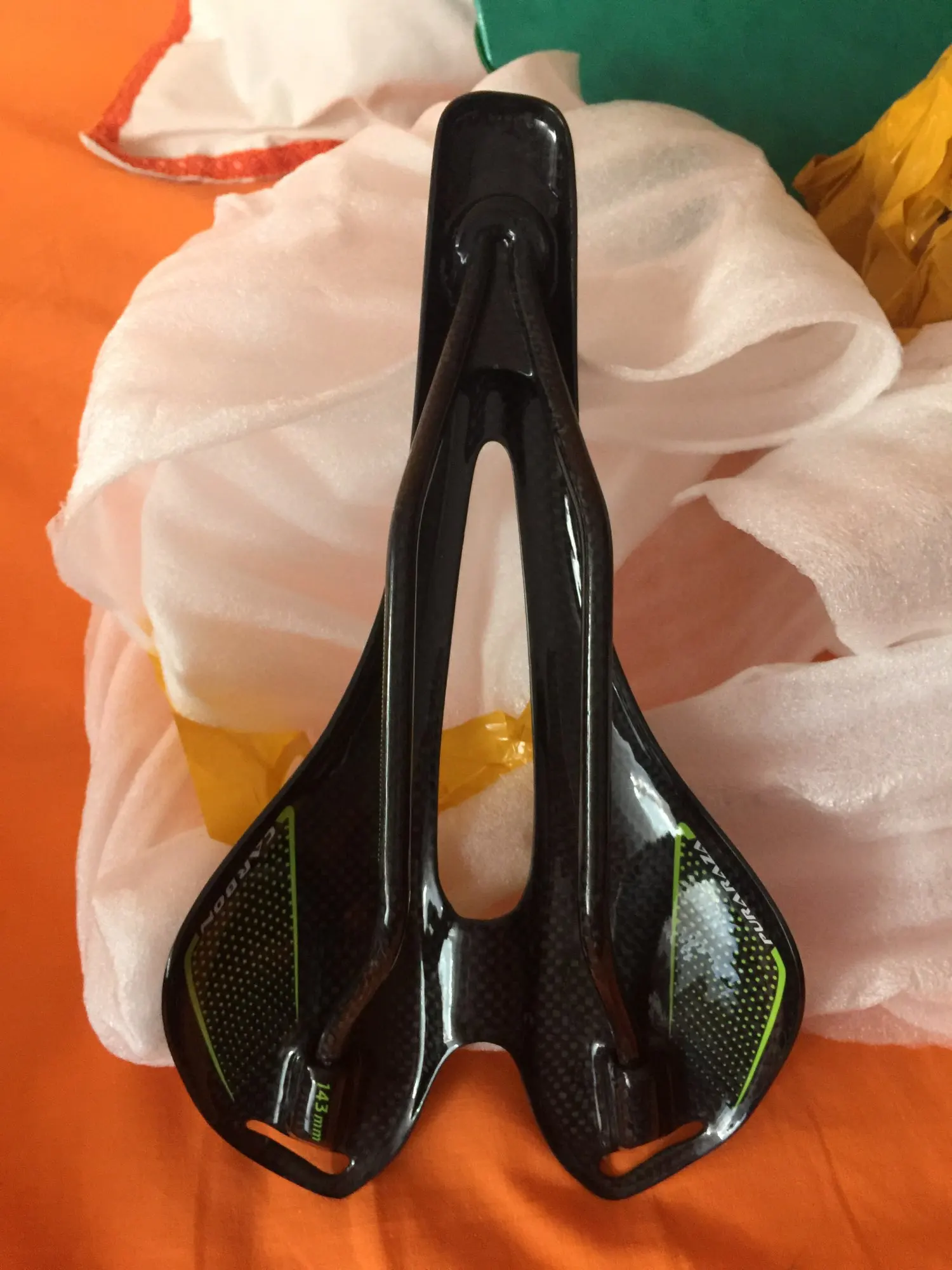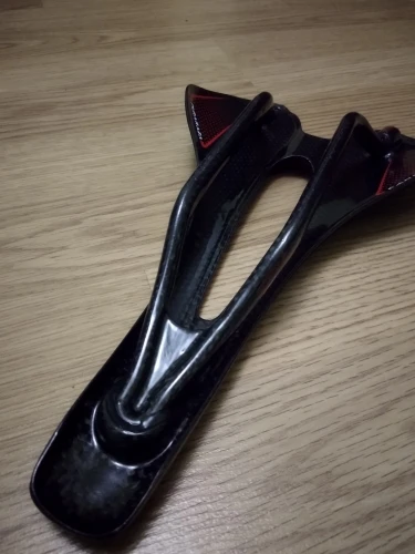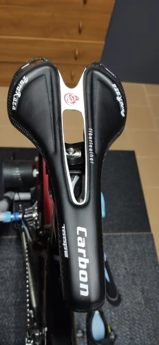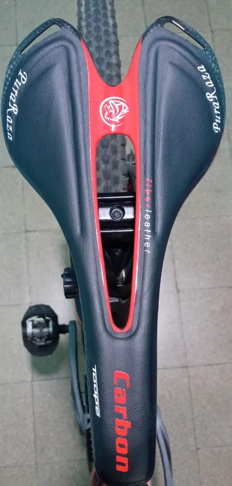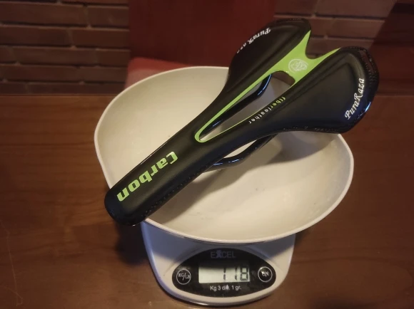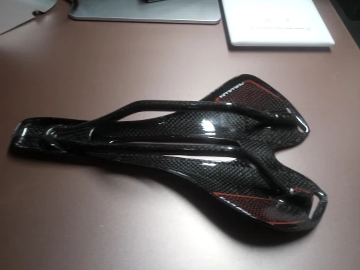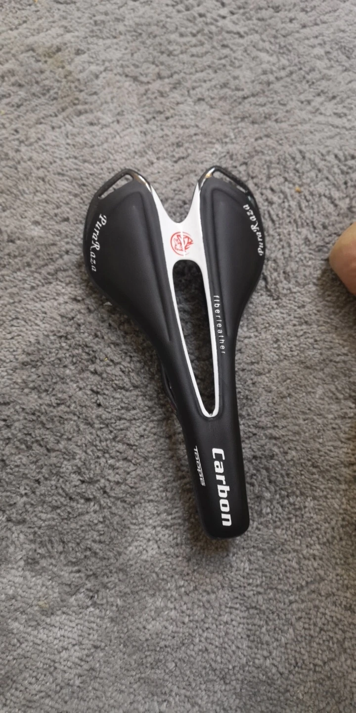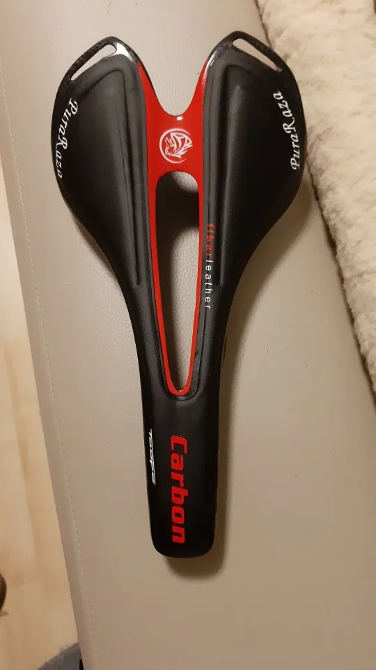 Седло действительно карбоновое. Легкое. Обшивка из кожзама. Приклеена не особо аккуратно