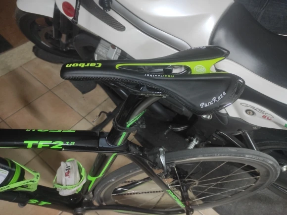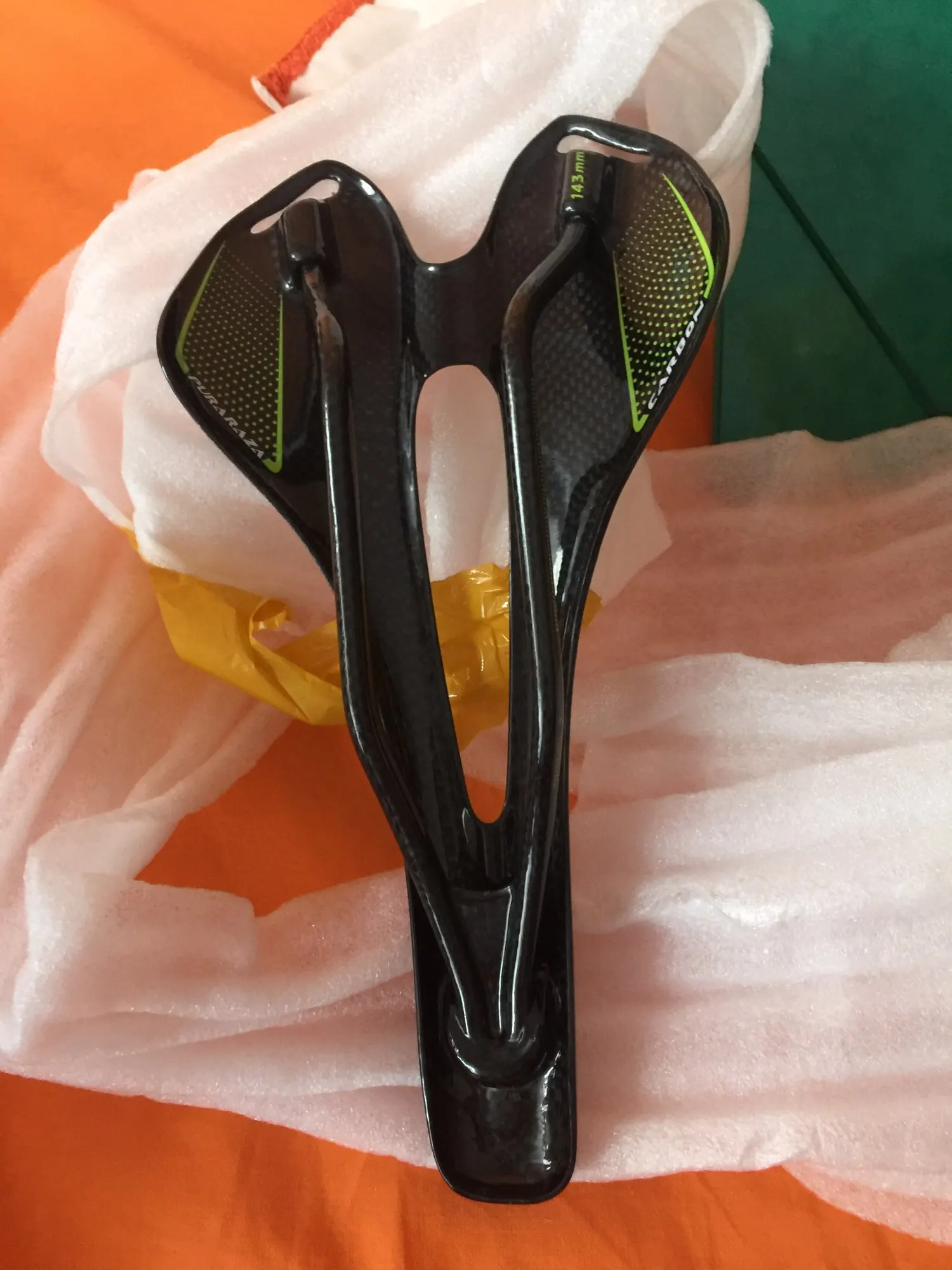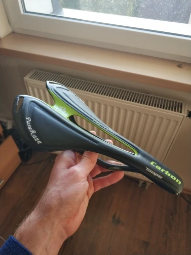 Седло соответствует описанию, вес также, полностью из углерода, минимальное количество набивки почти ничего. Мы надеемся, что с хорошей подкладкой для шорт будет удобно следить за тестом на дороге в течение следующих дней от хорошего вида до велосипеда в тон с графическим зеленым цветом