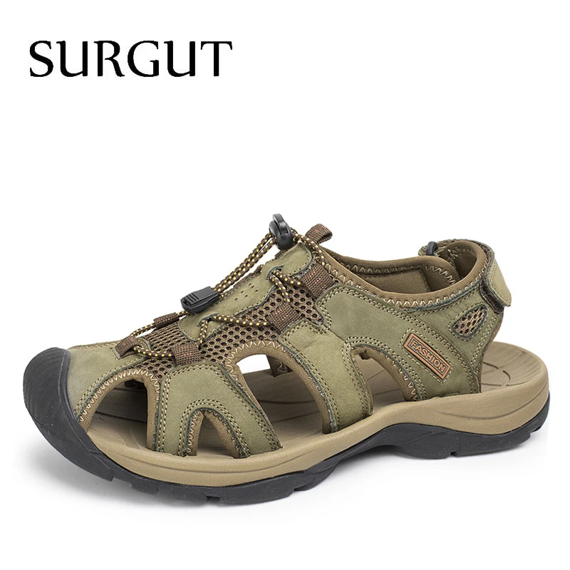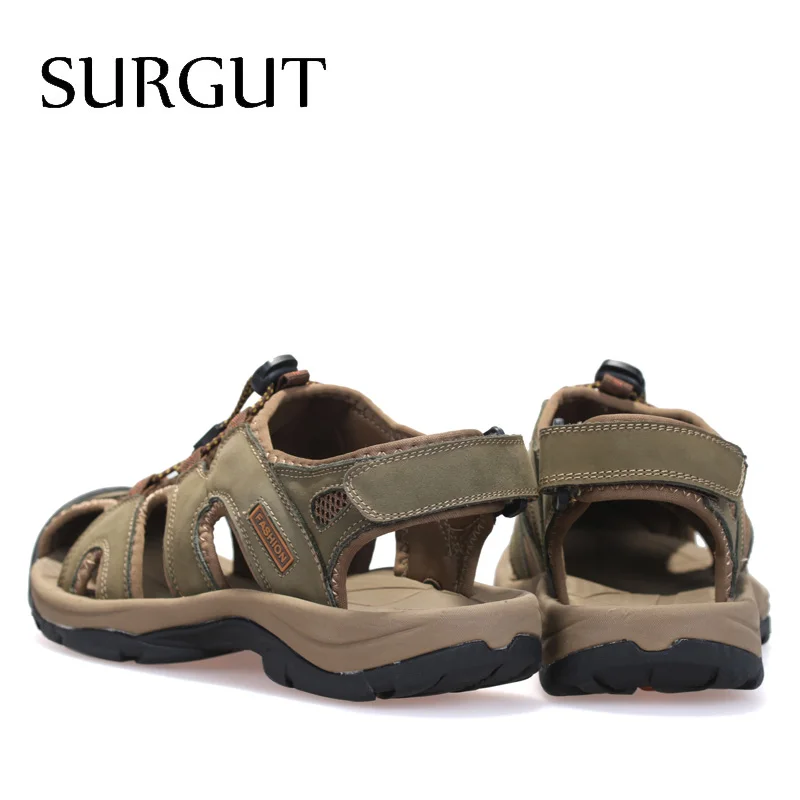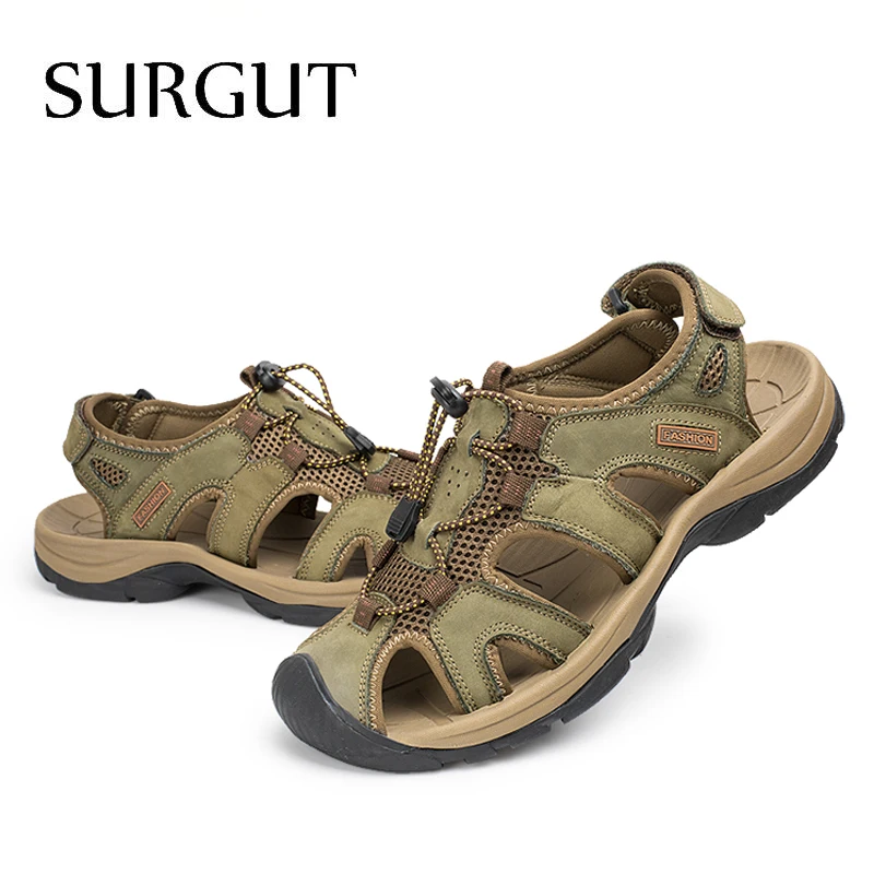 Мужские мягкие пляжные сандалии SURGUT, светло-коричневые босоножки из натуральной кожи, повседневная обувь в рыбацком стиле для лета, 2022