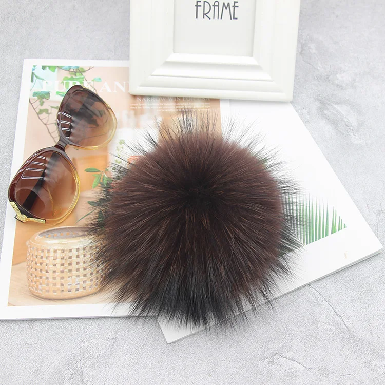 Помпоны женские из меха енота, из меха енота, зимние, натуральный мех, для изготовления шапок, 141617см