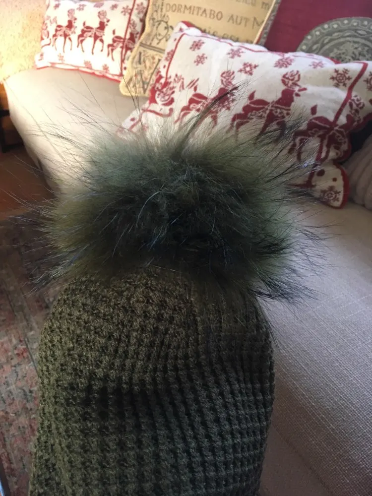 Прибыл в течение 15 дней. Милый помпон. Буду выглядеть потрясающе на моей шляпе. Я сняла кнопку «pop» и пришивала ее обратно, так что мех упадет лучше, так как он был немного односторонним, цвет отличается от изображения, но я не ожидала, что он будет полностью таким же цветом в любом случае, и я все еще люблю его❤