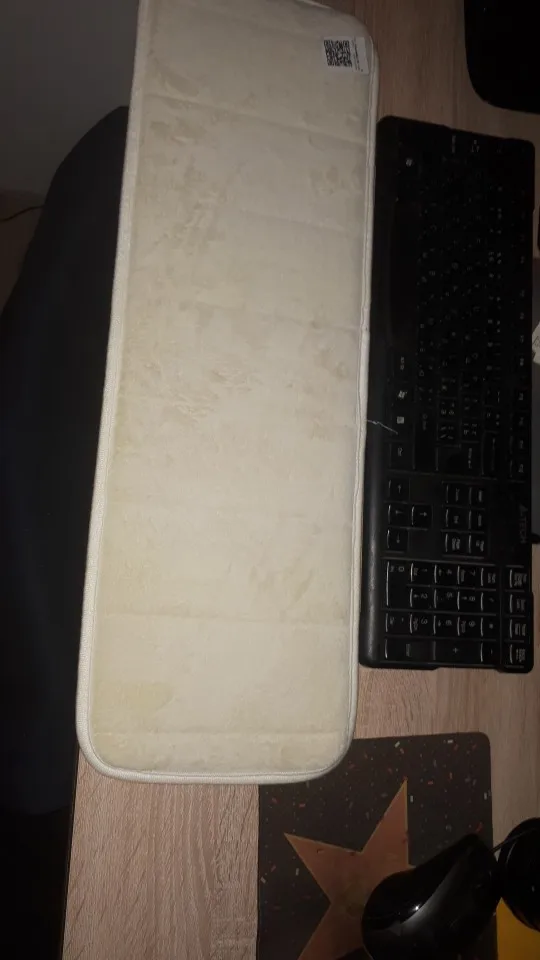 Товар понравился. Коврик приятный и мягкий, нижняя сторона прорезинена, на столе не скользит. Отличный размер коврика по длине, в самый раз. Товаром довольна. Рекомендую!