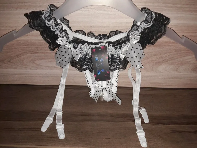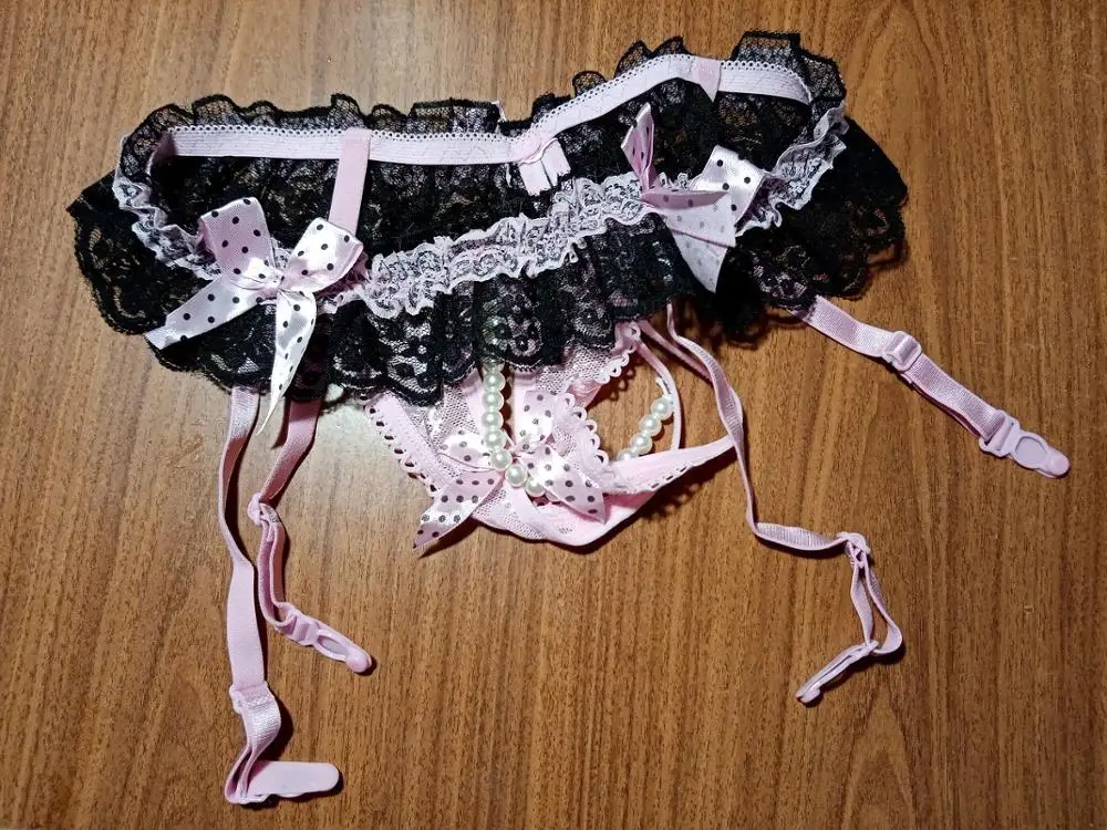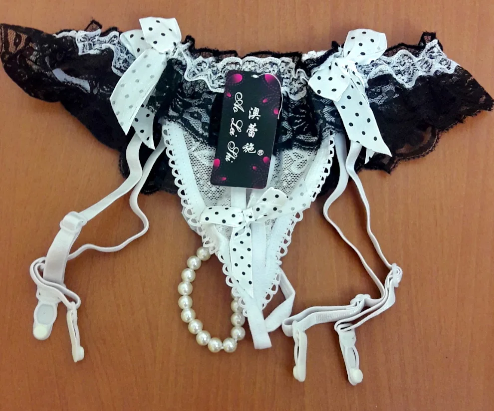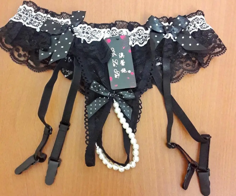 Пояс для чулок женский кружевной с вырезами, трусики с жемчужинами