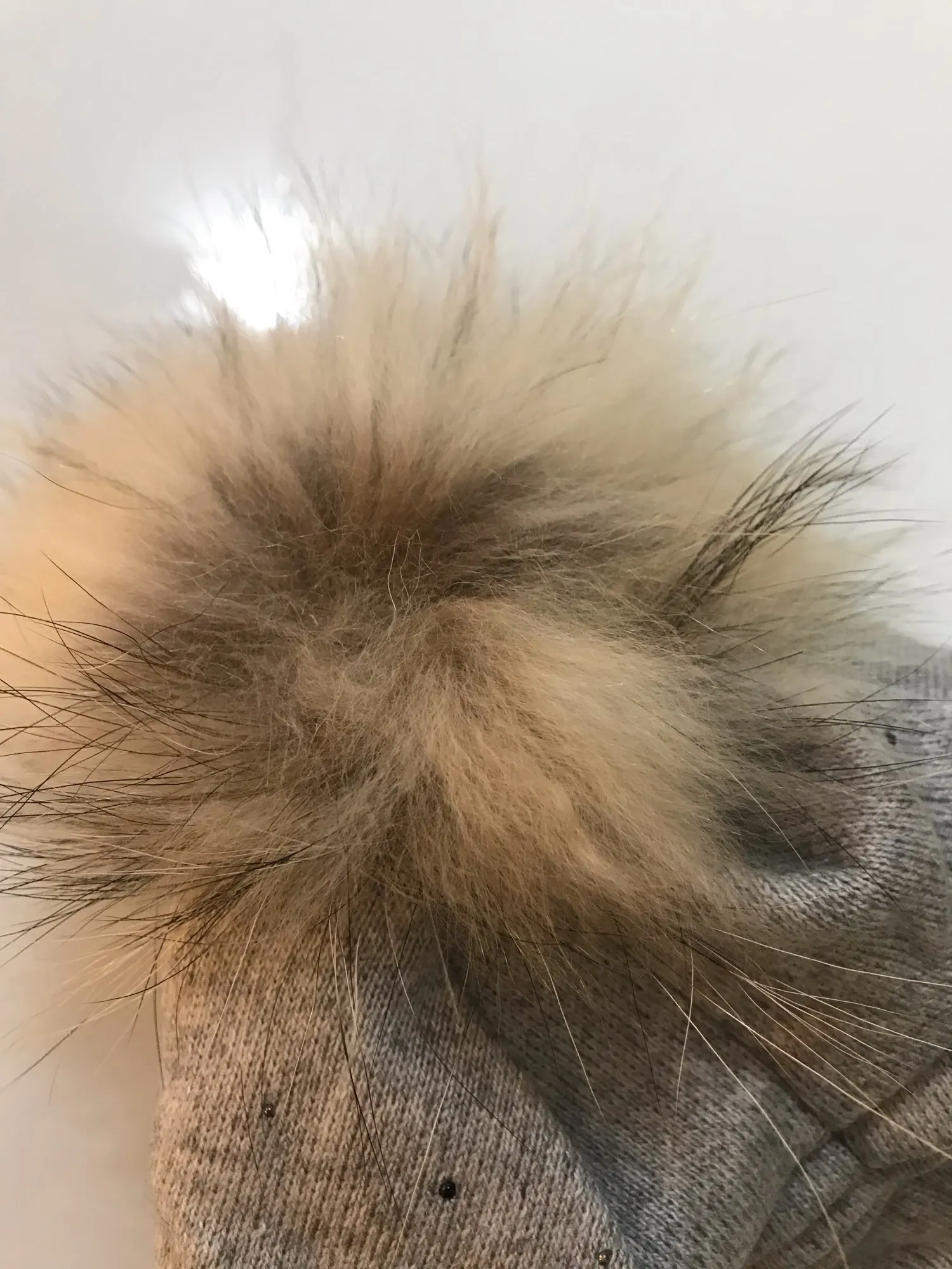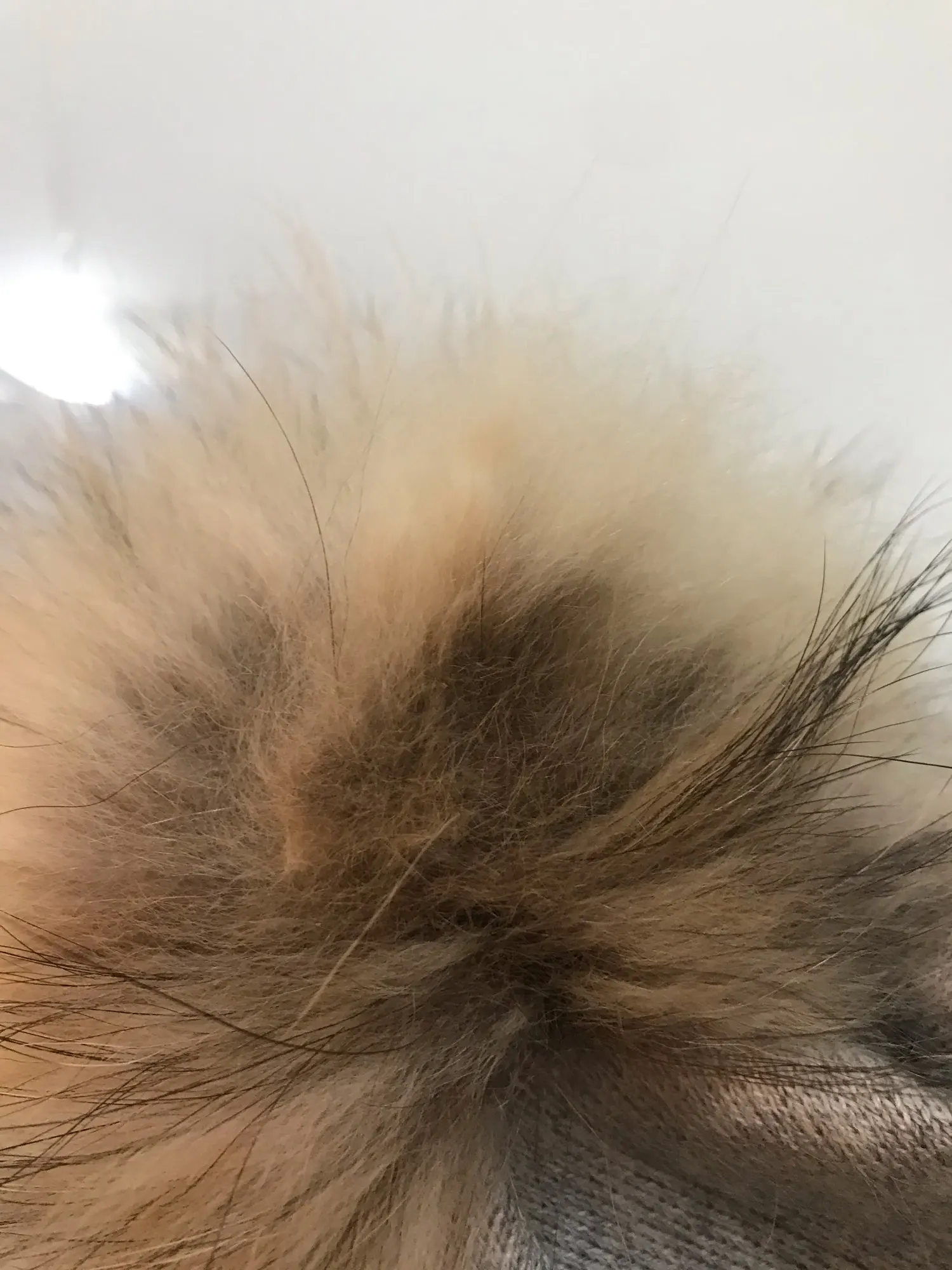 шапочка пришла как на фото, бежевая с помпоном на кнопке из натурального меха