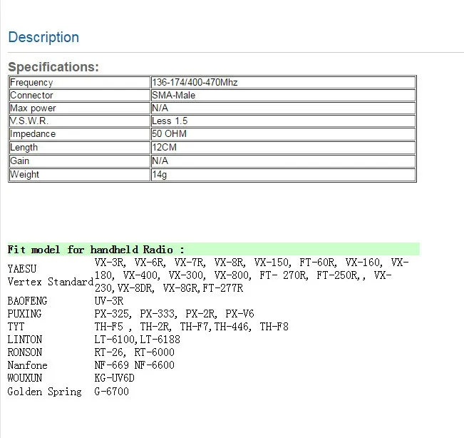 XQF 10 шт. с высоким коэффициентом усиления 3.5dBi VHF 136-174 МГц ...