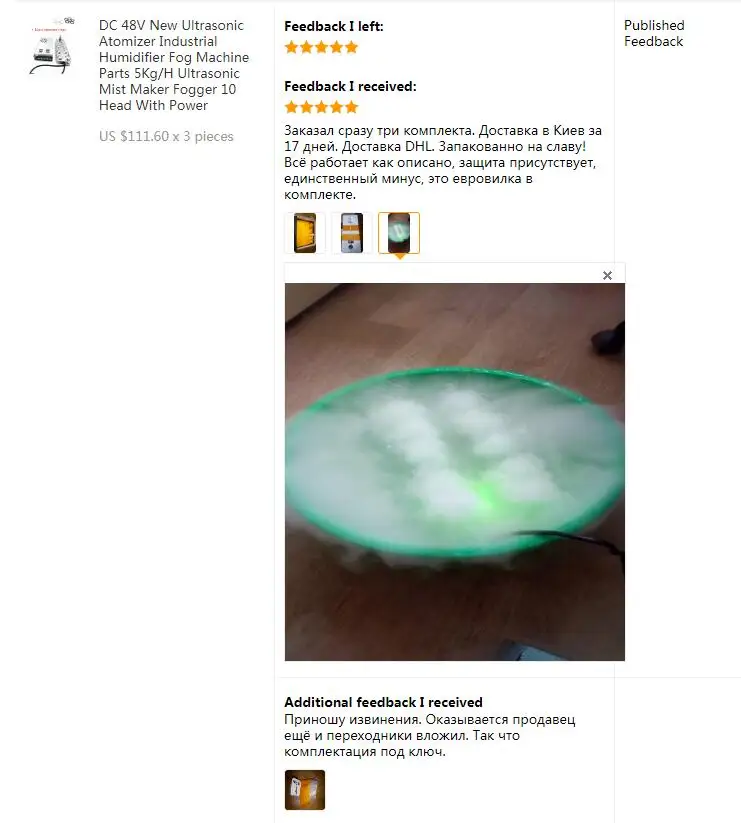Продавец немного отложил доставку из-за праздников в Китае. Тем не менее он был компенсирован быстрым ответом и как можно скорее отгрузкой. Увлажнитель работает должным образом, никаких проблем пока не обнаружено.