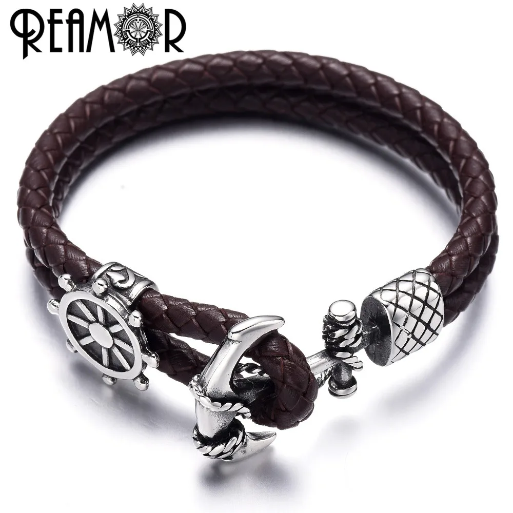 Мужские и женские браслеты REAMOR из натуральной кожи, браслеты из ...