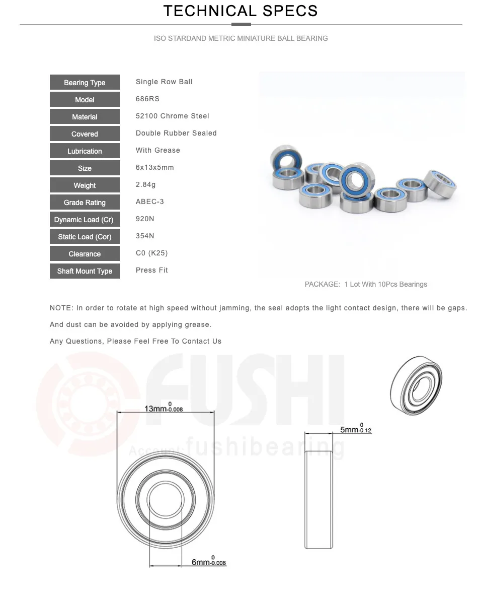 686-2RS подшипник ABEC-3 ( 10 шт.) 6x13x5 мм миниатюрные 686RS шарикоподшипники 6186RS синие герметичные 686 2RS Rulman