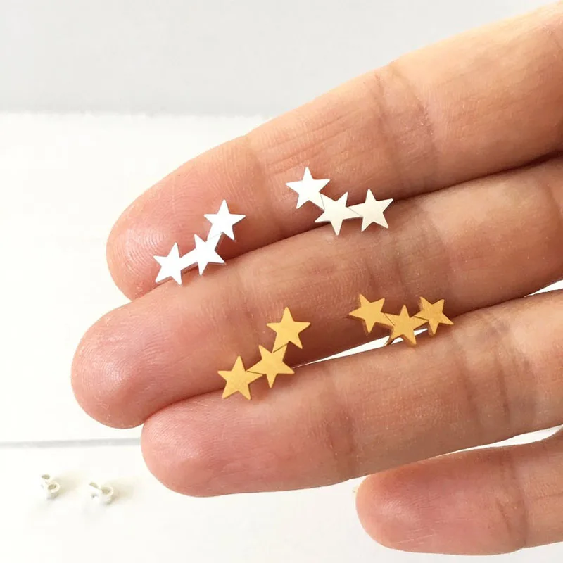 Великолепная сказка из нержавеющей стали три звезды серьгу цвета: золотистый, серебристый Цвет серьга для 2017, женская обувь Brincos Ювелирные изделия Brinco
