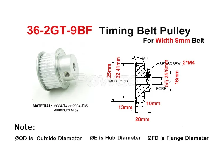 Номер модели36T GT2 Timing Pulley Fit Width 9mm 2GT Belt