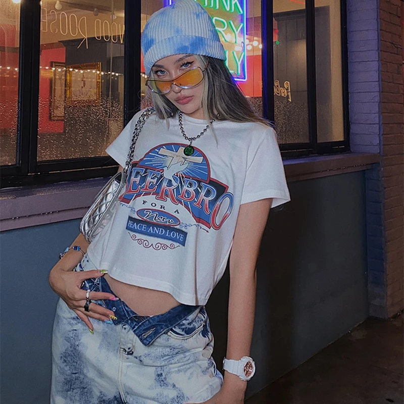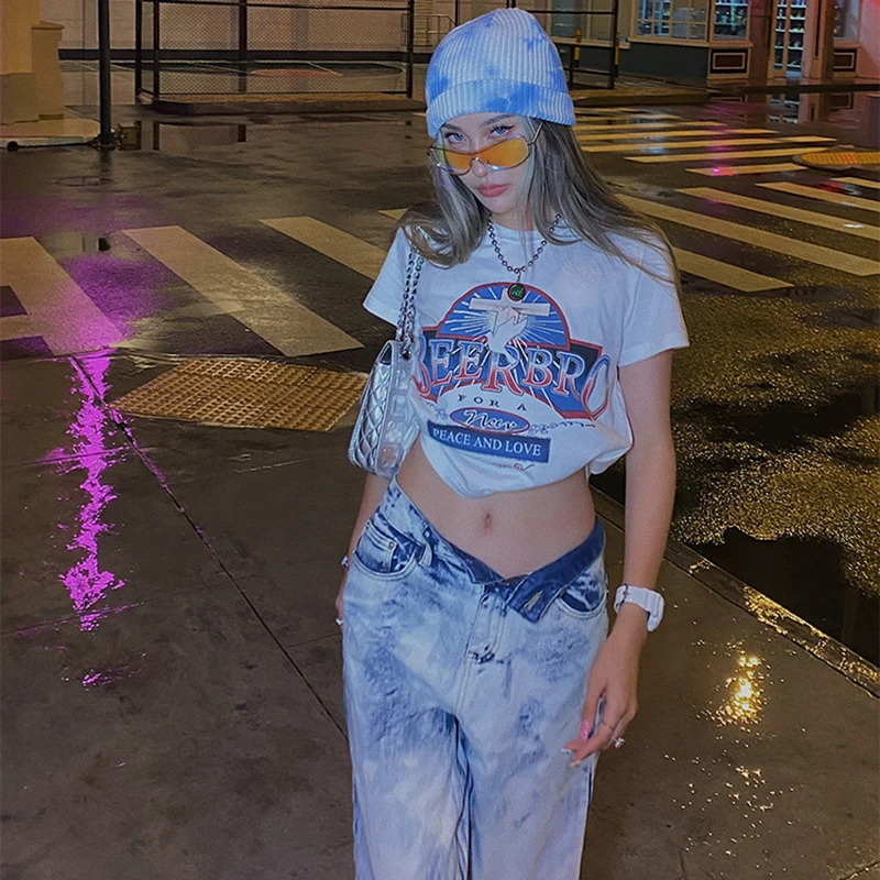 Футболка в стиле Харадзюку, женский топ с мультяшным принтом татуировок, женская одежда в стиле панк