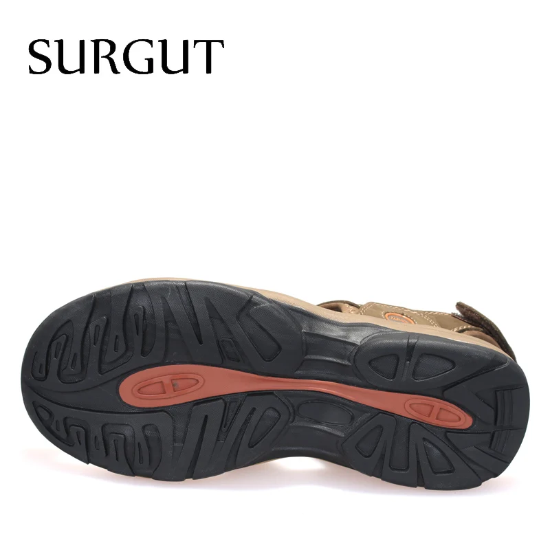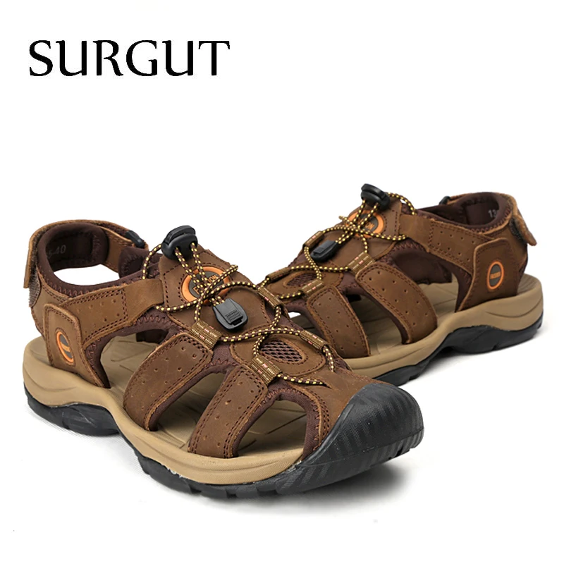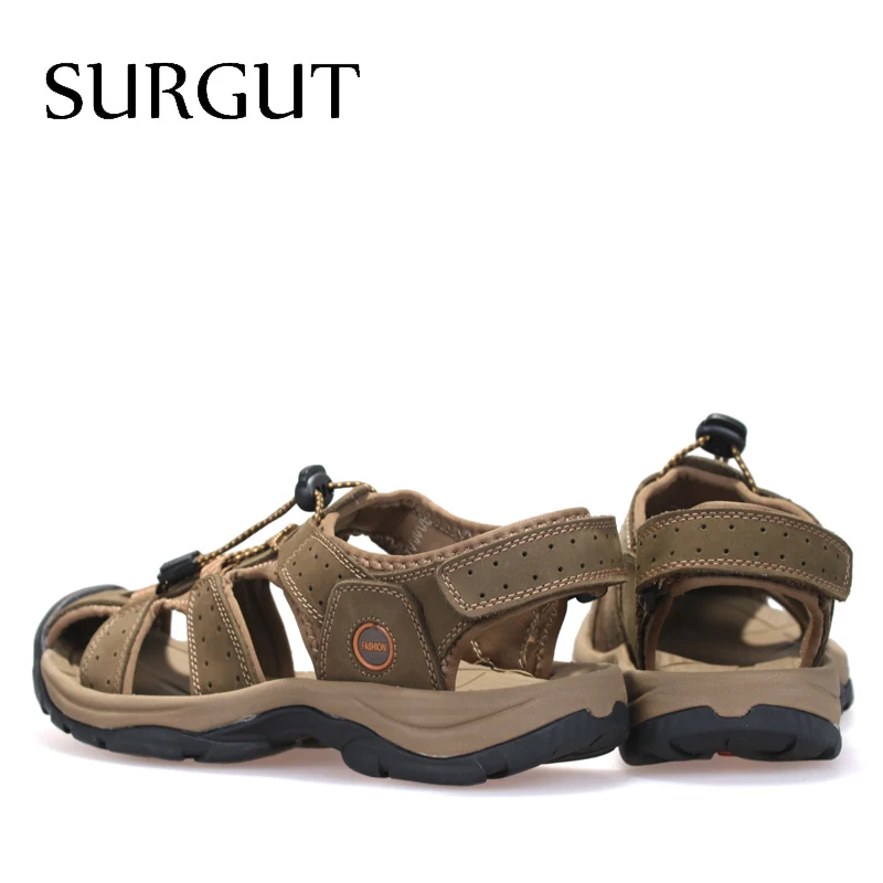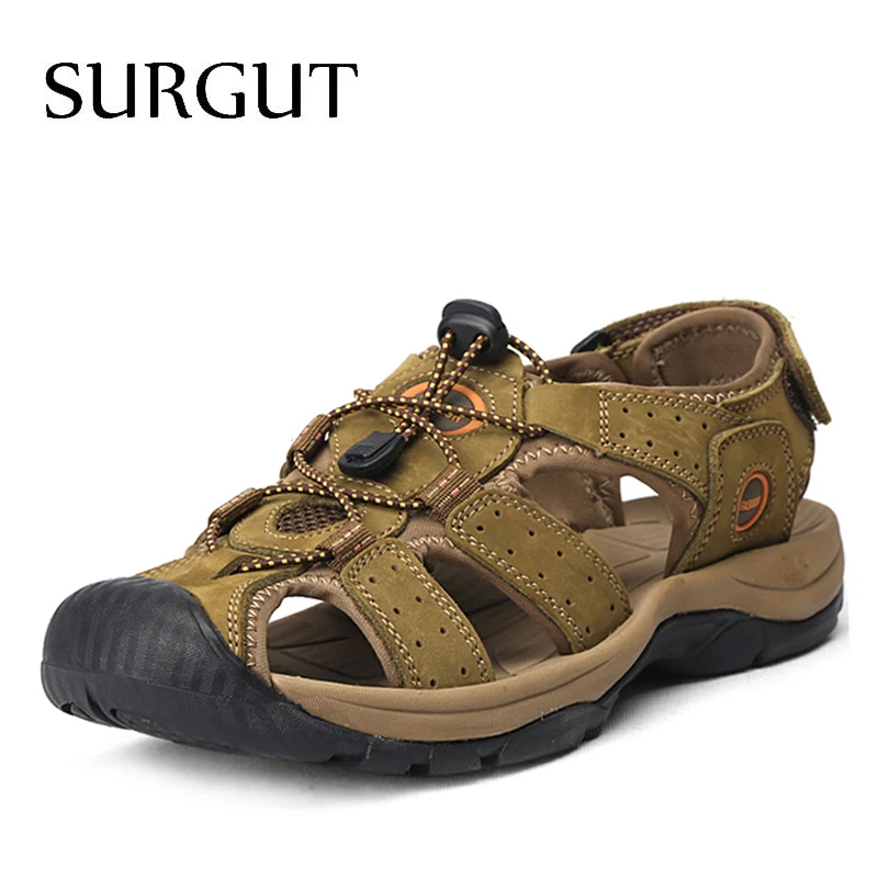 Мужская обувь из натуральной кожи SURGUT, сандалии цвета хаки, босоножки и тапки больших размеров 38-47 для лета, 2019
