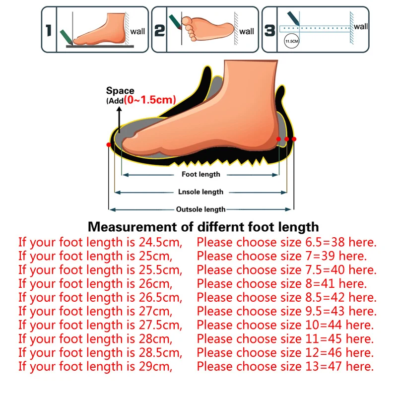 Пожалуйста, выбирайте размер обуви в соответствии с длиной вашей стопы по таблице размеров, приведенной ниже: