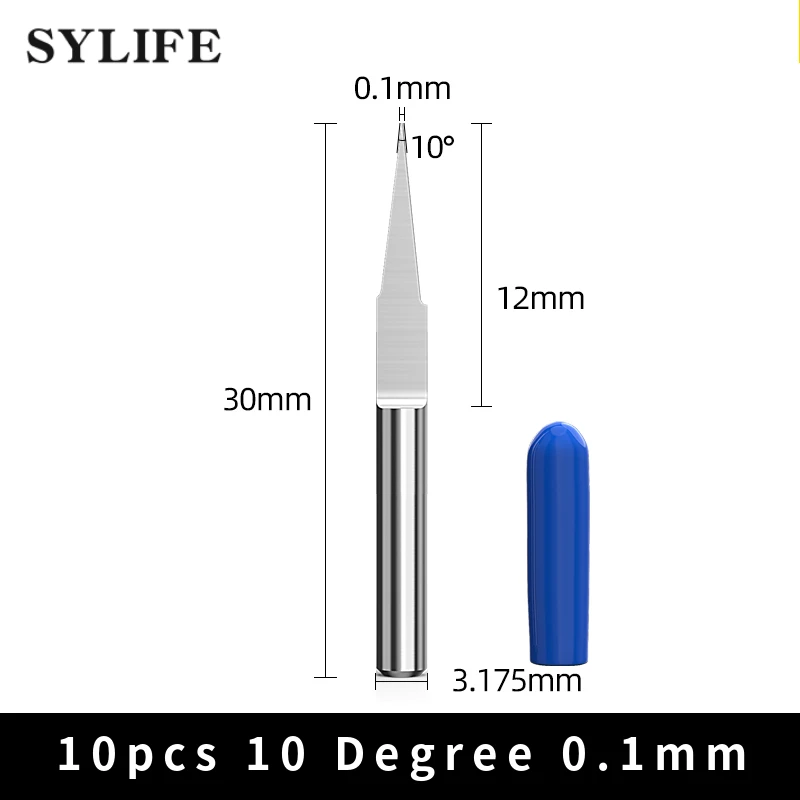 10 шт. прочные 10 градусов 0,1 мм твердосплавные гравировальные биты CNC маршрутизатор Инструмент