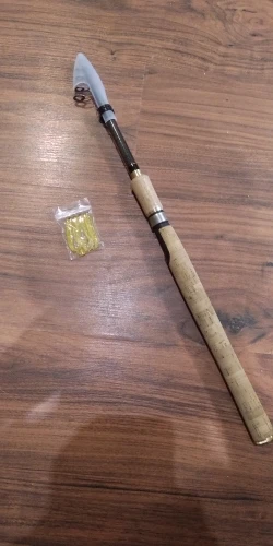 Спининг деревянный, собран небрежно. Первое кольцо очень маленькое. На длине 180см всего 4 кольца. В деле не пробовал, т.к. не сезон. По сравнению со складным, телескопическим шимано катана той же длины - реально дубовый. Довольно легкий вес. Пробковая ручка наклеена небрежно. Тест не указал, указана лишь длина в сантиметрах. Странно хотеть большего от спиннинга за 1000р. Своих денег определённо стоит. Упакован хорошо. В комплекте стрёмный матерчатый чехол из подкладочного материала на завязочках и пластиковый чехол-нашлёпка на кольца. Продаван положил в подарок 4 "беспонтовых" красных резинки, спасибо ему за это!